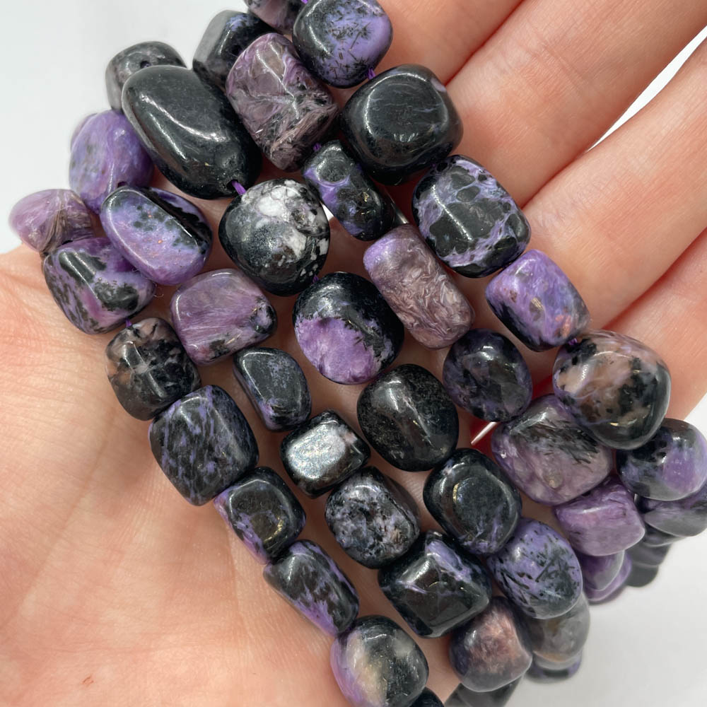 Стоит отметить, что зачастую чароитом называют красивейшую горную породу, сочетающую, собственно, сам минерал чароит, а также прожилки кварца, черного эгирита, желтоватого тинаксита и полевых шпатов.
