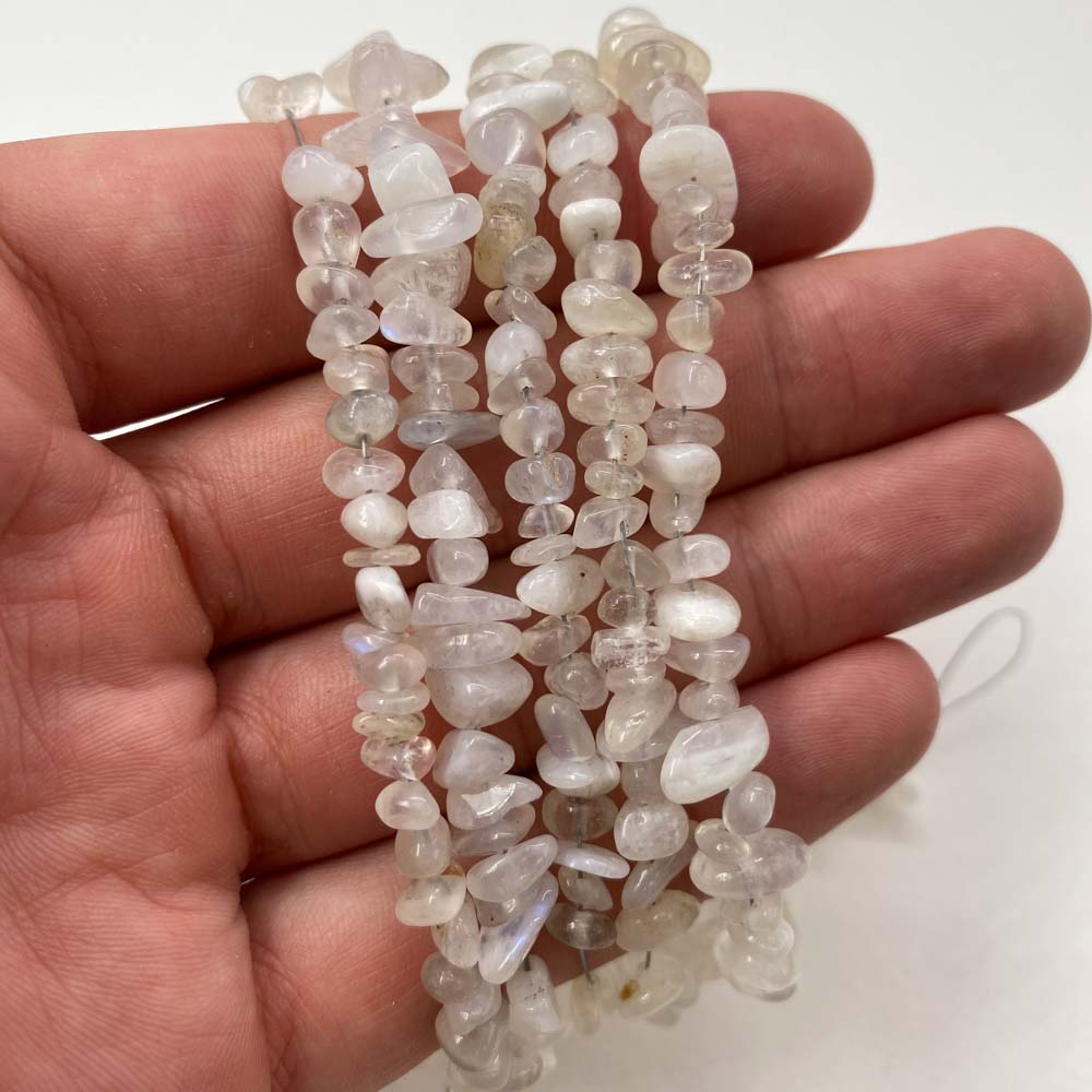 Лунный камень - это торговый термин обозначающий минералы группы полевых шпатов с выраженной игрой света - иризацией. Она может быть как цветной как и серебристой как на данных образцах.