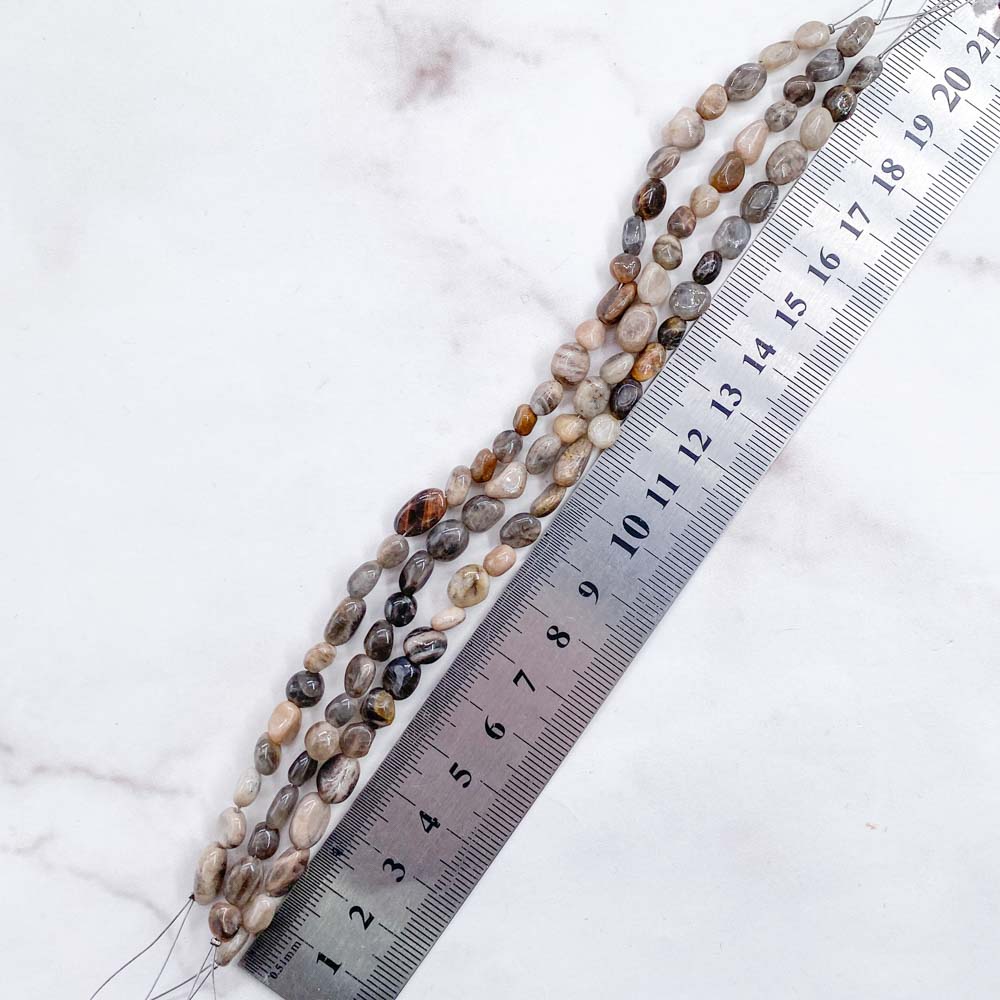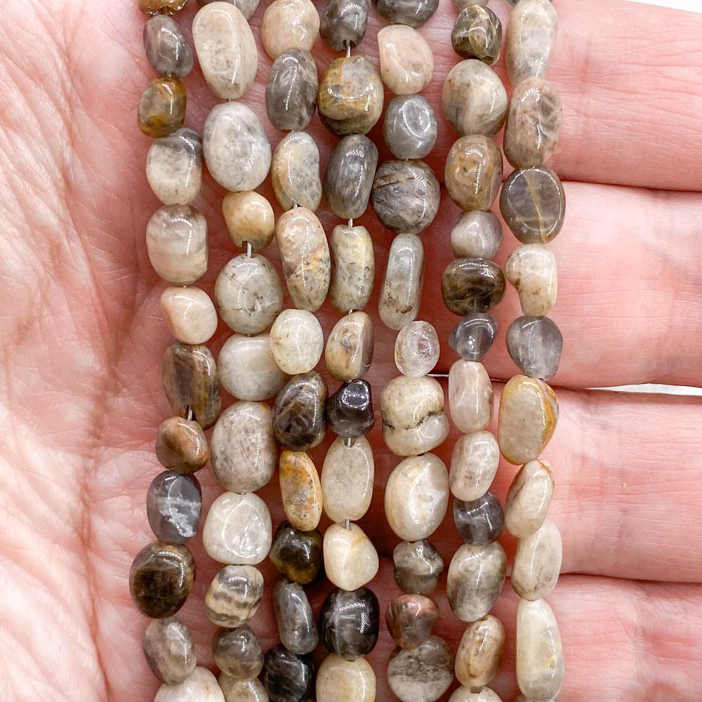 Лунный камень - это торговый термин обозначающий минералы группы полевых шпатов с выраженной игрой света - иризацией. Она может быть как цветной как и серебристой как на данных образцах.