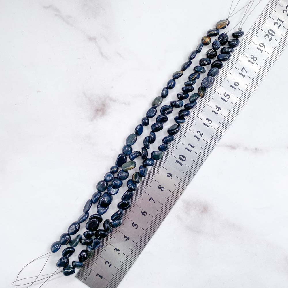 В природе соколиный глаз часто встречается в одном образце с тигровым глазом и тогда мы чётко видим в каких местах камня происходило окисление и цвет изменился с синего на жёлтый, а где осталась изначальная порода