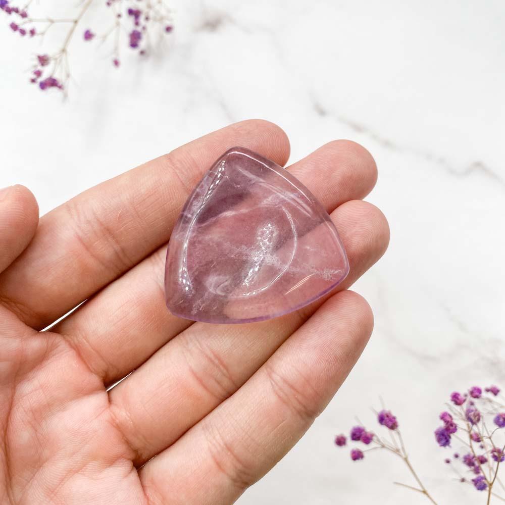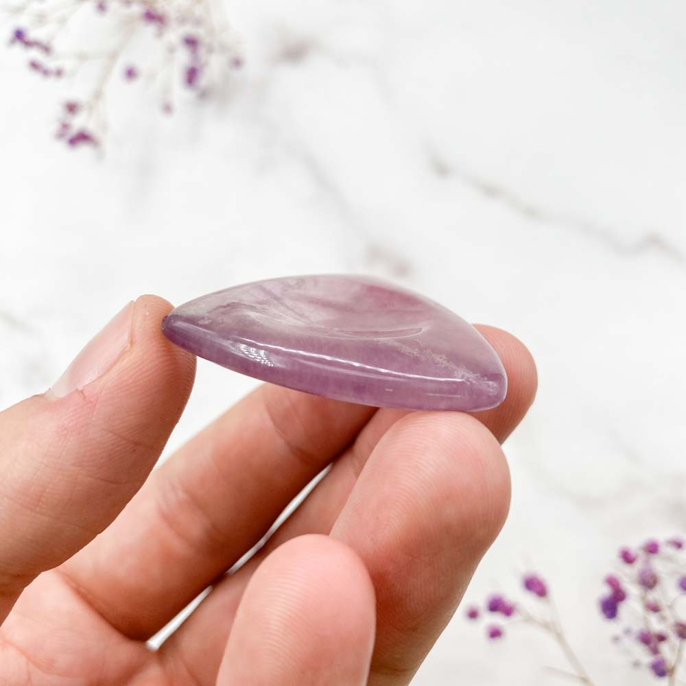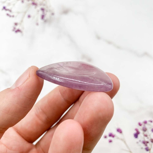 Это гладкие, полированные образцы, обычно в форме овала, чтобы можно было гладить камень для расслабления или облегчения тревоги. Для удобства на них выточена специальная небольшая выемка. Ими приятно пользоваться во время медитаций и практик. Они удобно ложатся в руку и очень тактильные и приятные наощупь