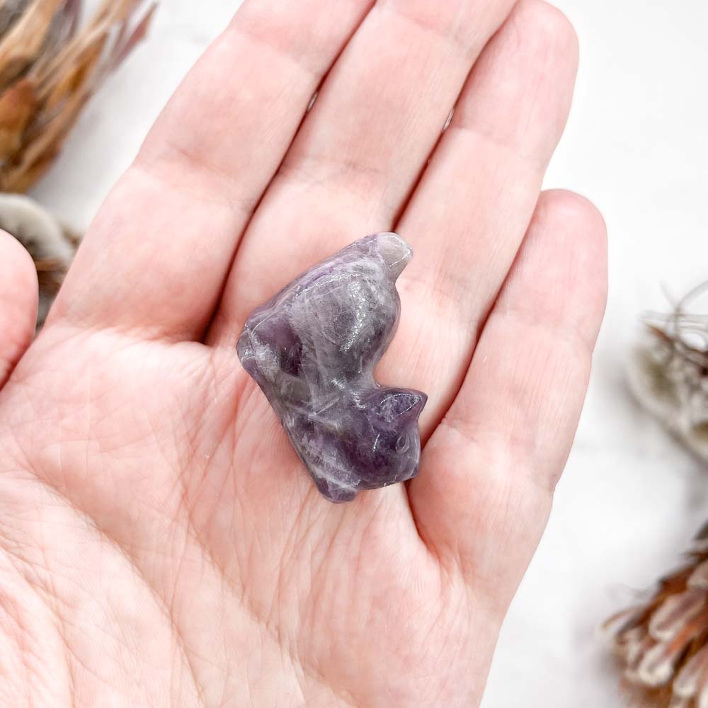 Аметист один из самых популярных камней в мире. Среди наших клиентов более 50% начинали свои коллекции именно с него. Нежный цвет разных оттенков фиолетового и сиреневого очень приятен для глаз, а ровные кристаллы поражают всех, кто впервые сталкивается с минералами. Этот камень помогает нам замедлиться, развить осознанность и понять предназначение в этом мире.