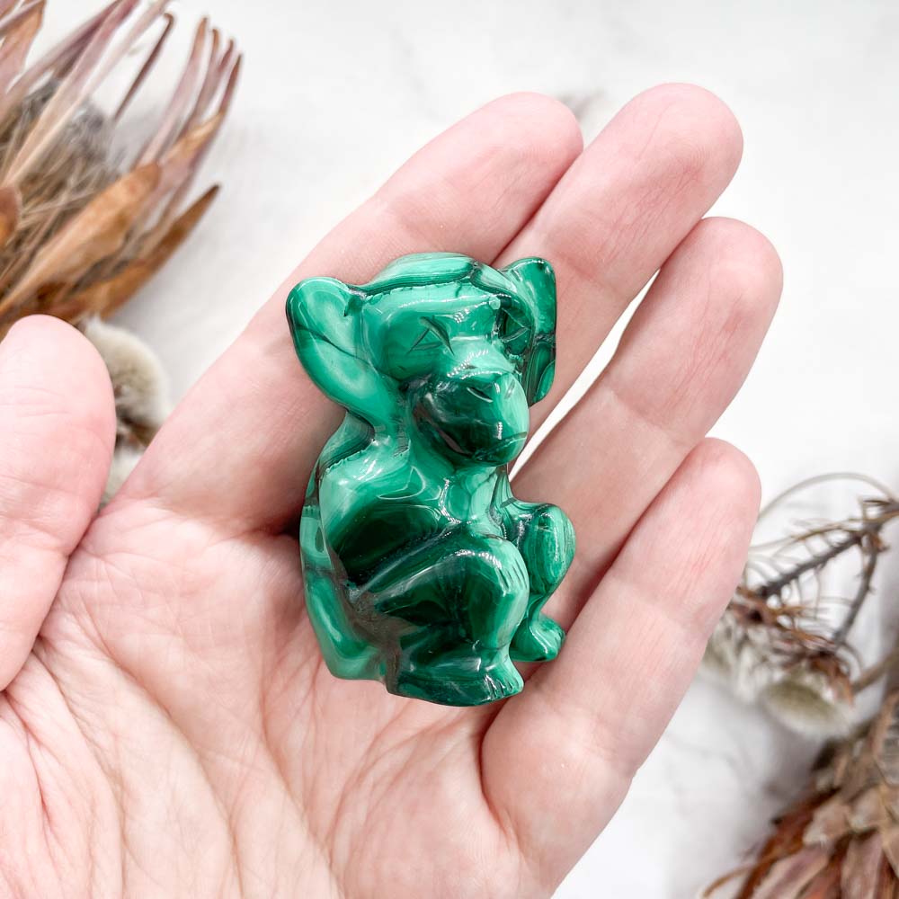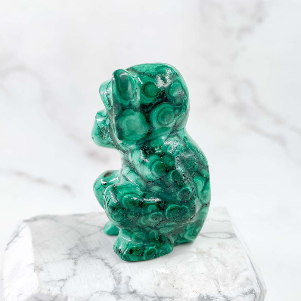Малахит является мягким минералом и его не стоит хранить в одном месте с более трёрдыми камнями или кристаллами: кварцами, флюоритами, полевыми шпатами и др. Также его нежелательно мыть водой и противопоказано мыть мылом, в этом случае на камне может образоваться белый налёт.