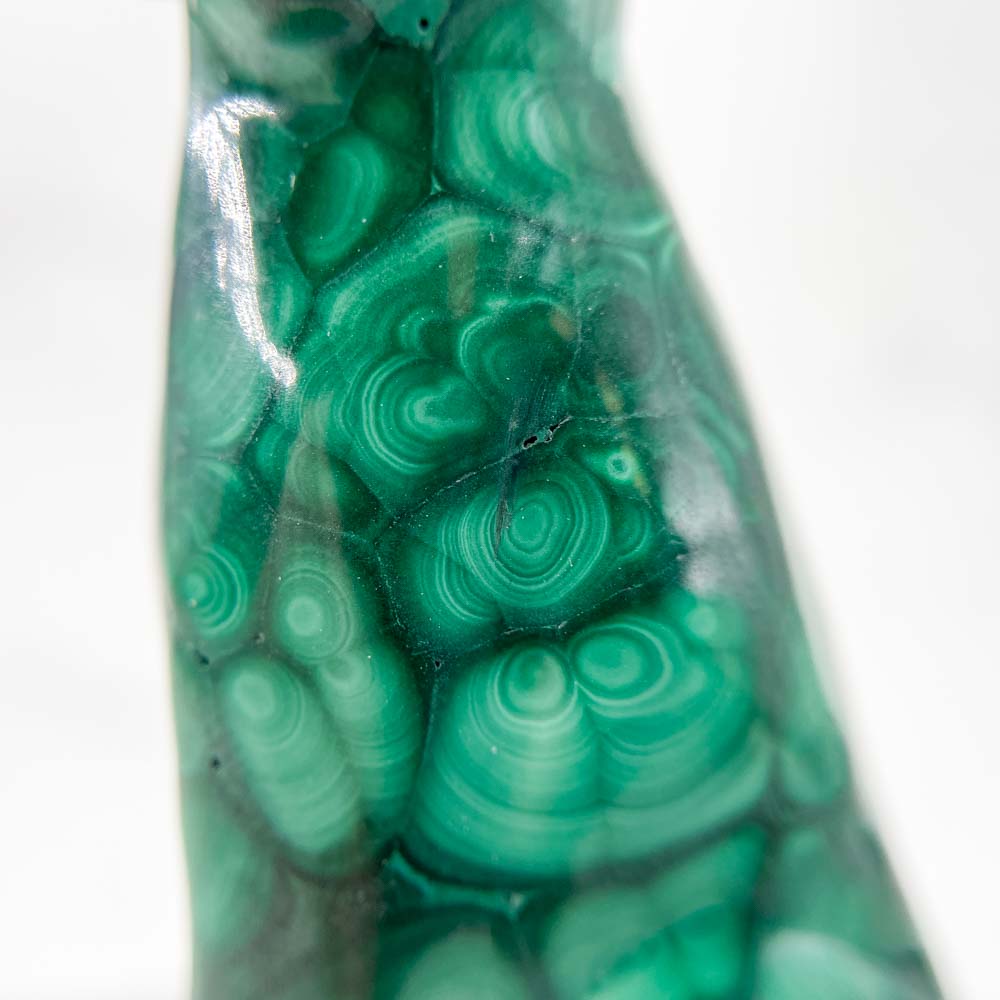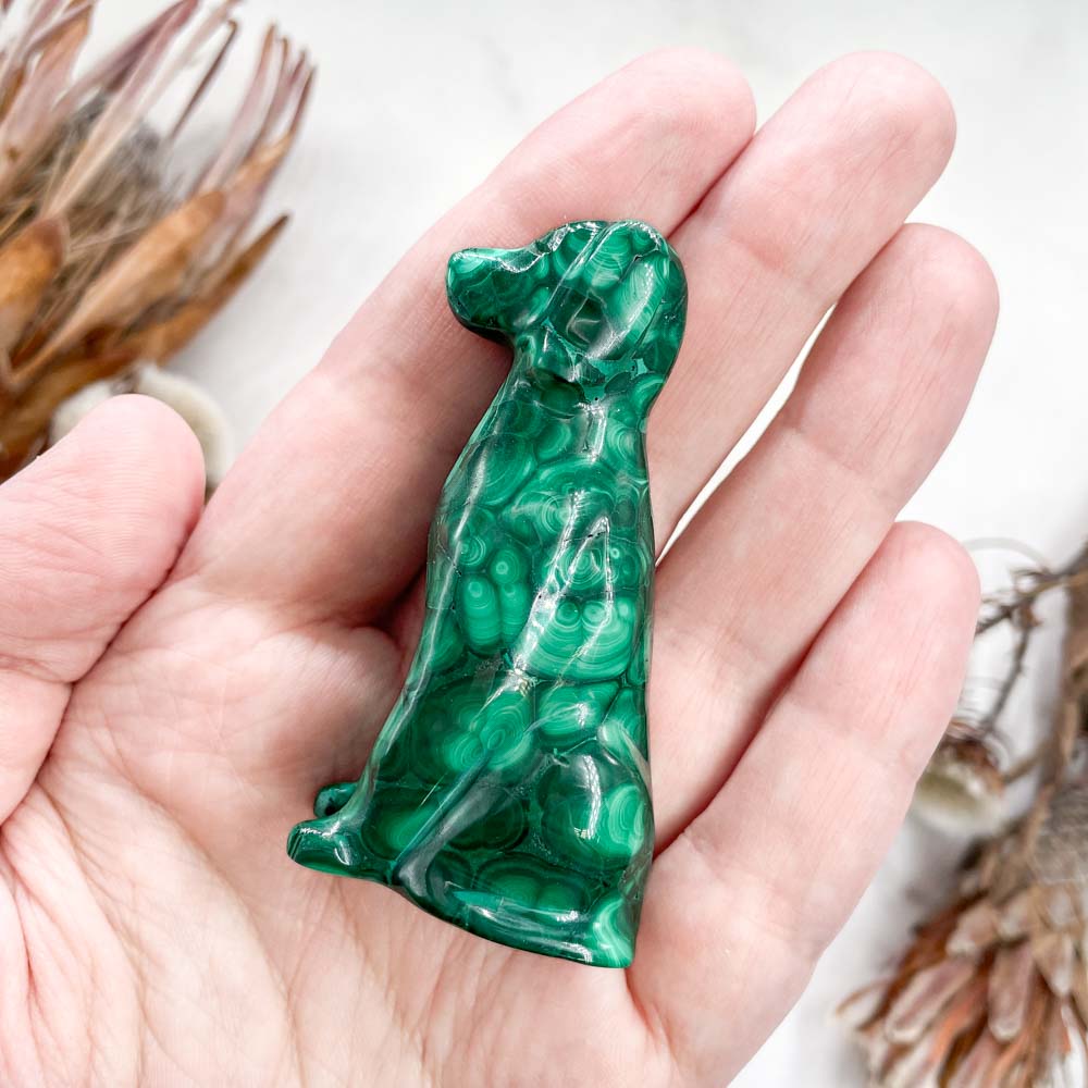 Малахит является мягким минералом и его не стоит хранить в одном месте с более трёрдыми камнями или кристаллами: кварцами, флюоритами, полевыми шпатами и др. Также его нежелательно мыть водой и противопоказано мыть мылом, в этом случае на камне может образоваться белый налёт.