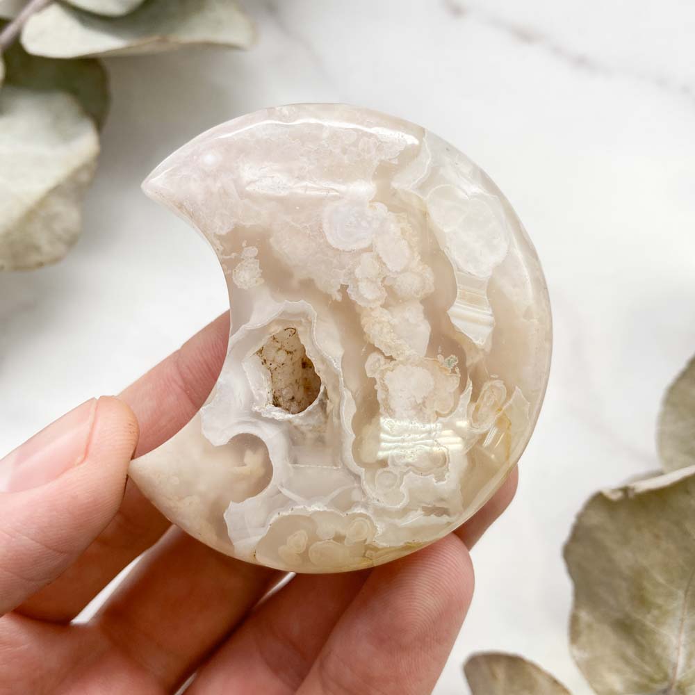 Полумесяц из халцедона "цветочный" или "сакура" (тонированный)