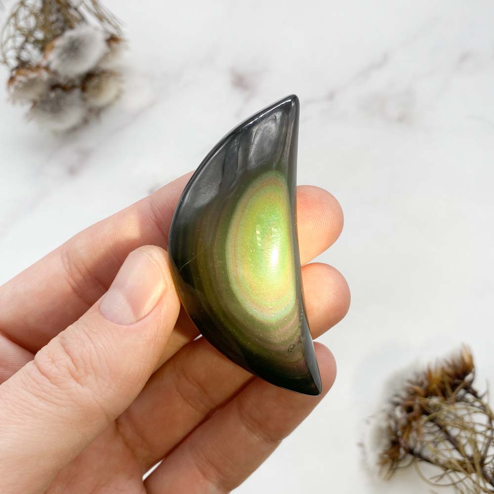 Обсидиан является природным вулканическим стеклом, образующимся при быстром застывания лавы. На особом счету располагается обсидиан с иризацией в голубовато-зеленых, розоватых, сиреневых тонах, обусловленной, вероятнее всего, наличием наночастиц магнетита, отражающих солнечный свет, или выстроенных в ряд мельчайших пузырьков воздуха, размер которых напрямую влияет на интенсивность оттенка.