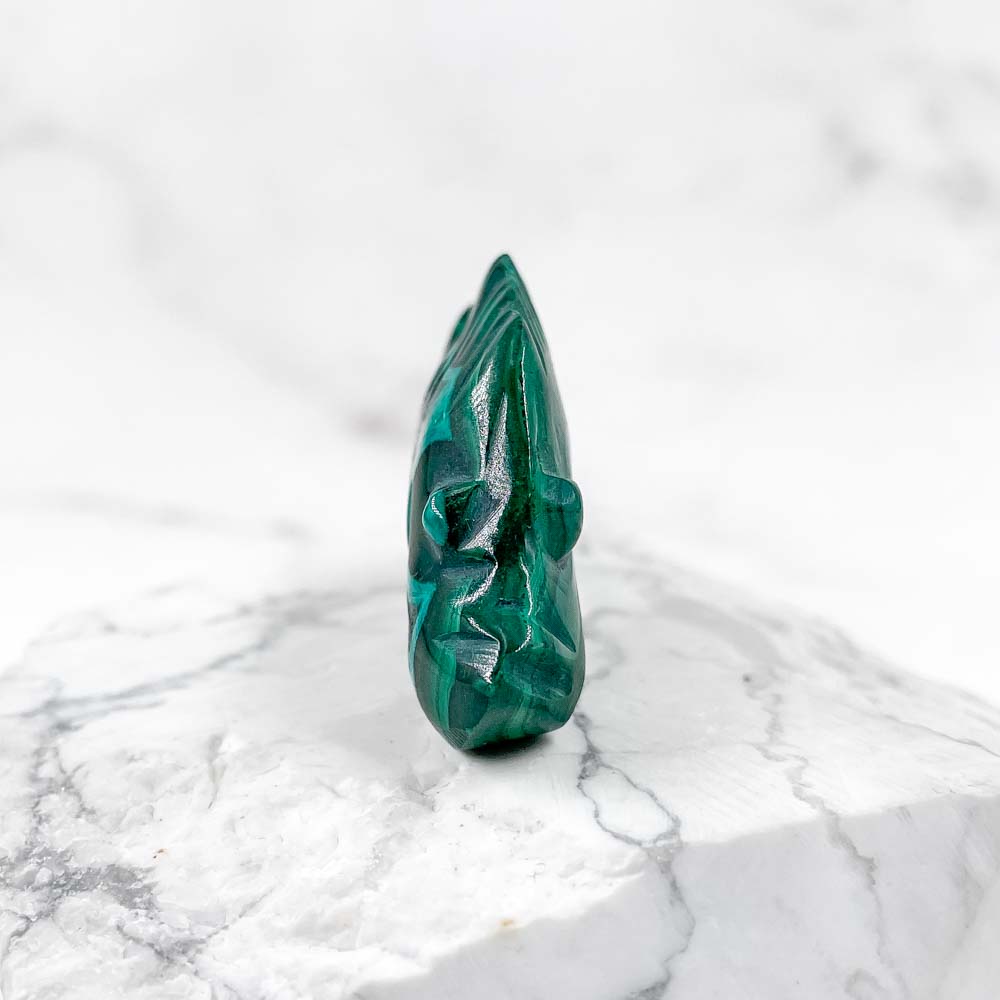 На психологическом уровне малахит - это камень изменений. Жизнь под влиянием этого камня становится более яркой, рискованной. Он заставляет развиваться и чётко указывает, что же блокирует духовный рост. Малахит обнажает глубоко запрятанные чувства, разрушает нежелательные связи и модели поведения. Учит как брать на себя ответственность за действия, мысли чувства.