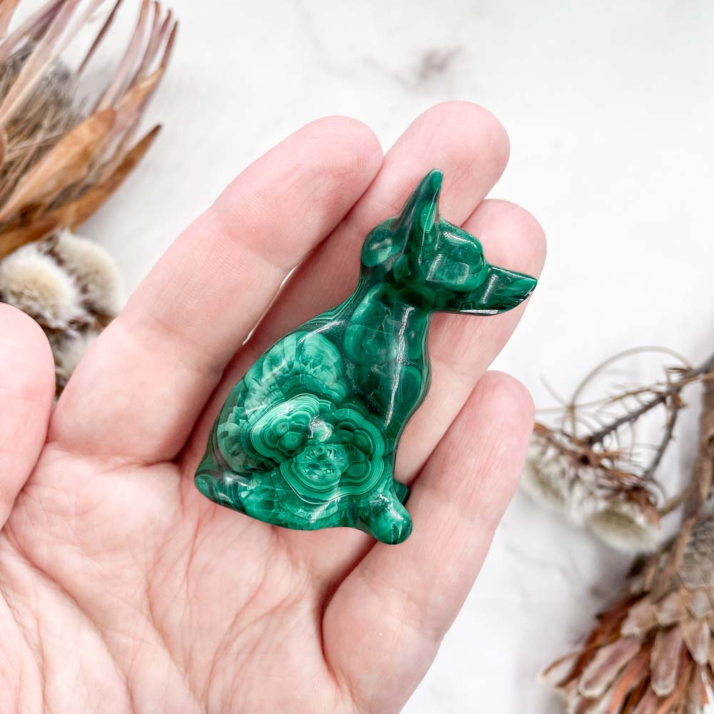 Малахит является мягким минералом и его не стоит хранить в одном месте с более трёрдыми камнями или кристаллами: кварцами, флюоритами, полевыми шпатами и др. Также его нежелательно мыть водой и противопоказано мыть мылом, в этом случае на камне может образоваться белый налёт.