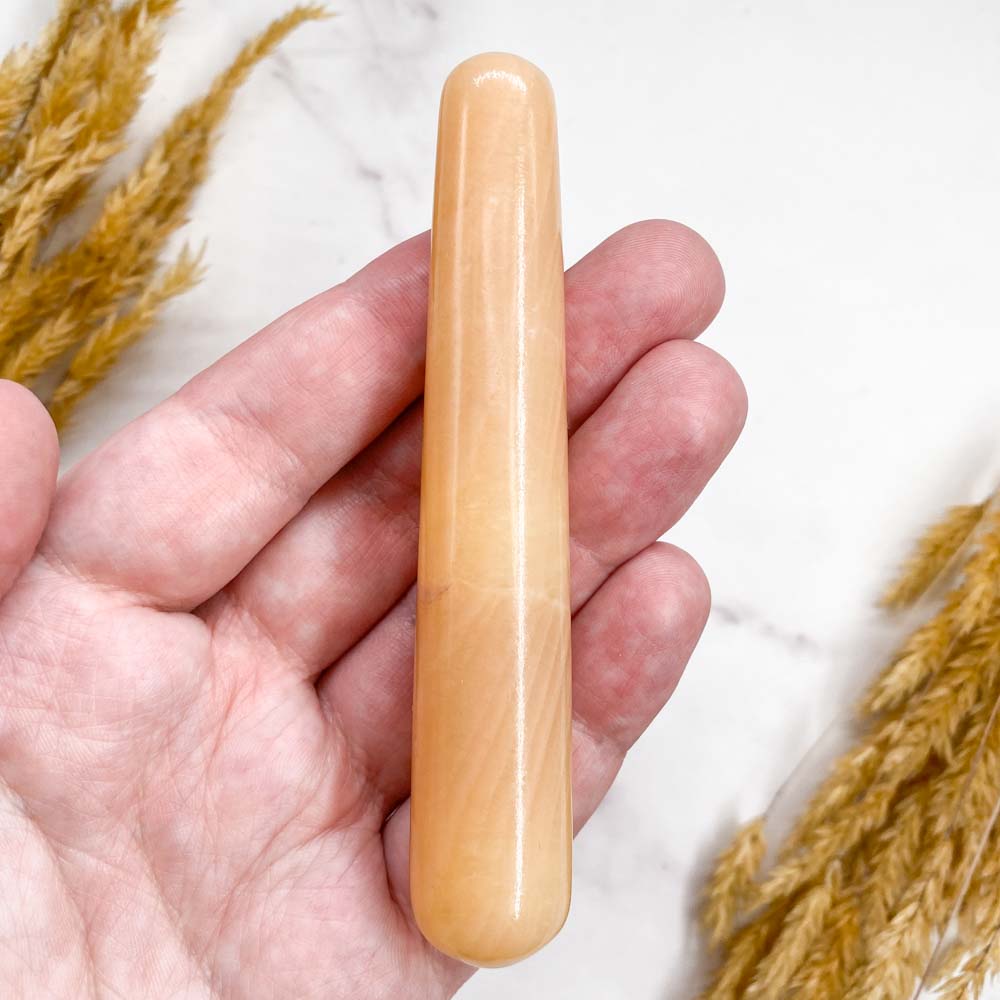 Считается, что оранжевый или «золотистый» кальцит укрепляет волю, помогает быстро погрузиться в любой процесс, будь то медитация или новый рабочий проект. И есть у него наиболее интересное и желанное свойство, которое одна знакомый литотерапевт сформулировала как: "Камень очень надо!" Т.е. нужно визуализировать вещь, мечту, которую хотите получить, ждать, а потом Вселенная поможет это получить максимально быстро и легко.