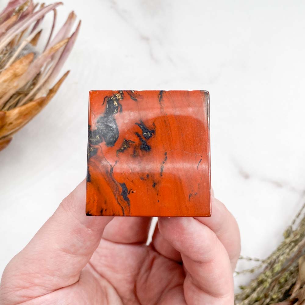 Красная яшма способна входить во взаимодействие с пространством вокруг. С ней улучшается общее физическое состояние, она поддерживает во время стресса и приносит спокойствие. Эта разновидность помогает обнаружить проблемы, прежде чем они станут очевидными, и обеспечивает понимание в самых трудных ситуациях. Она усиливает недостающие свойства, характеризующие пространство проживания человека.