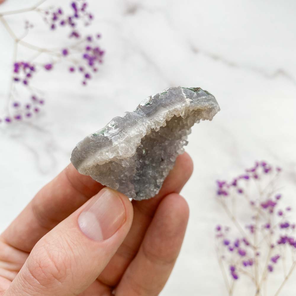 Аметист один из самых популярных камней в мире. Среди наших клиентов более 50% начинали свои коллекции именно с него. Нежный цвет разных оттенков фиолетового очень приятен для глаз, а ровные кристаллы поражают всех, кто впервые сталкивается с минералами. Этот камень помогает нам замедлиться, развить осознанность и понять предназначение в этом мире.