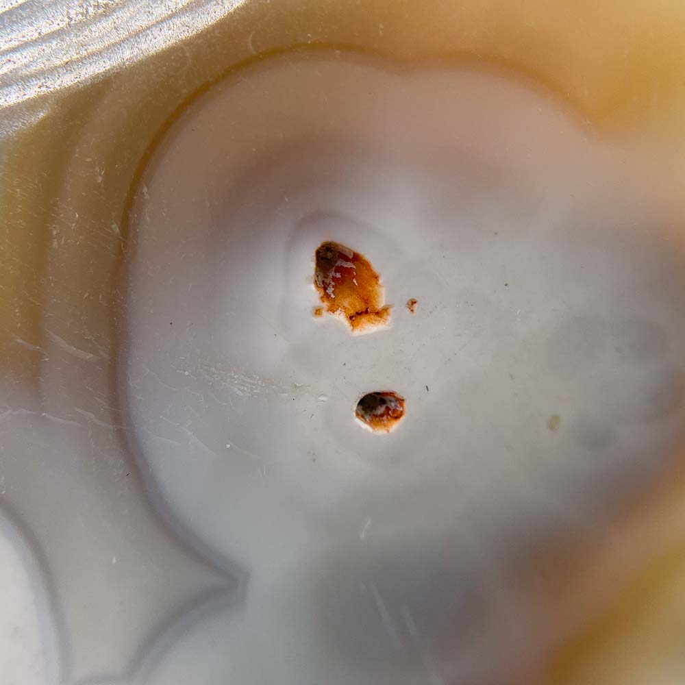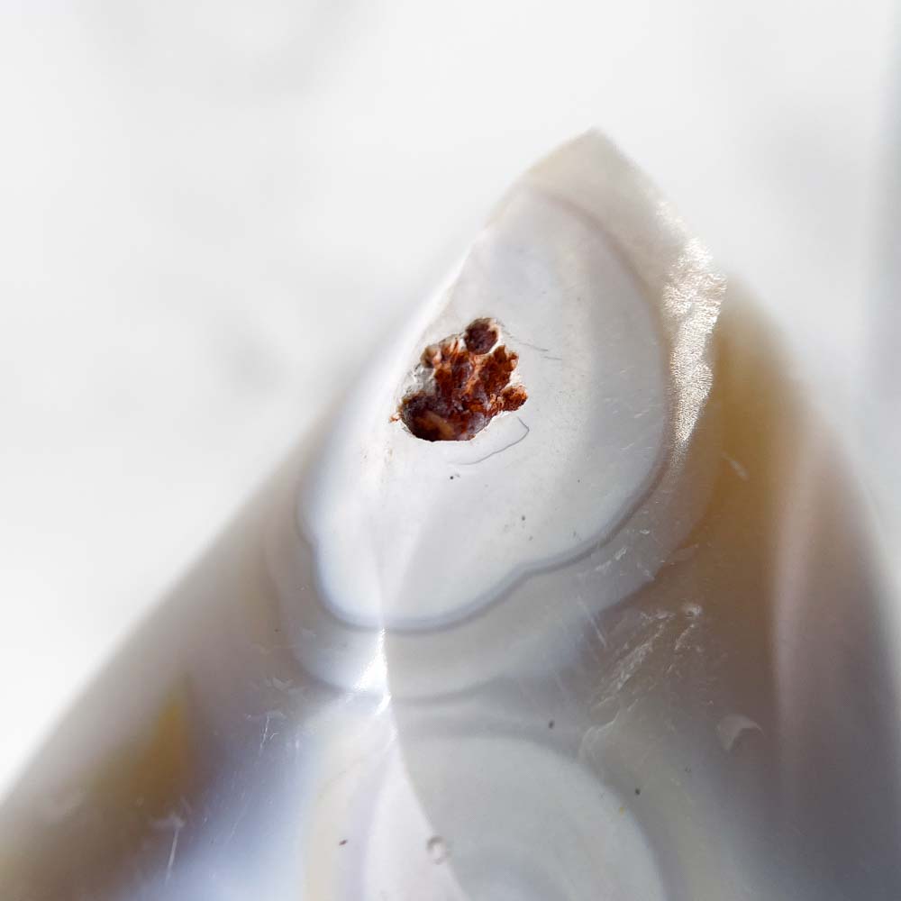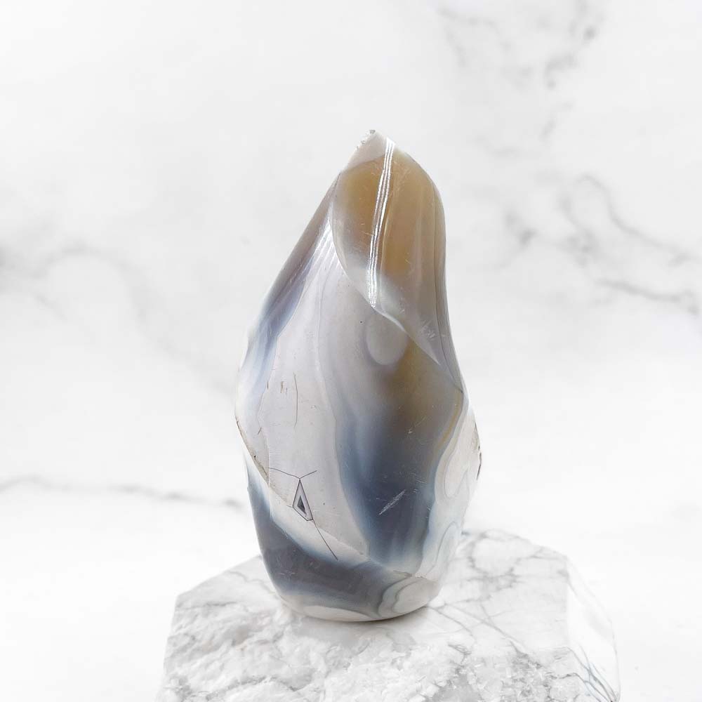 Агат - отличный камень для знакомства с миром камней и минералов. Его можно назвать камнем-собакой. Он будет верным другом, помощников в делах и не даст в обиду. Камень помогает сглаживать углы, находить компромисс в любых ситуациях. Агат даёт ощущение спокойствия, умиротворения. Достаточно просто несколько минут рассматривать его узоры чтобы расслабиться и насладиться красотой камня.