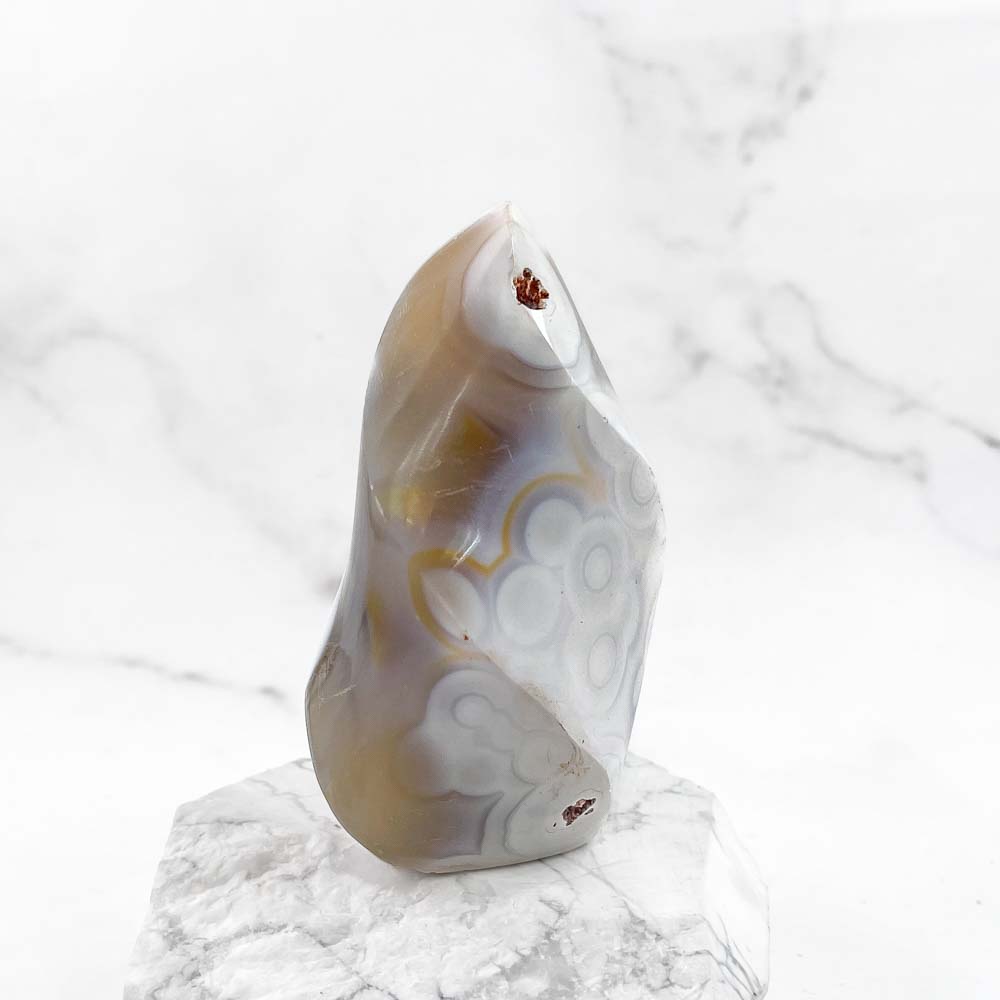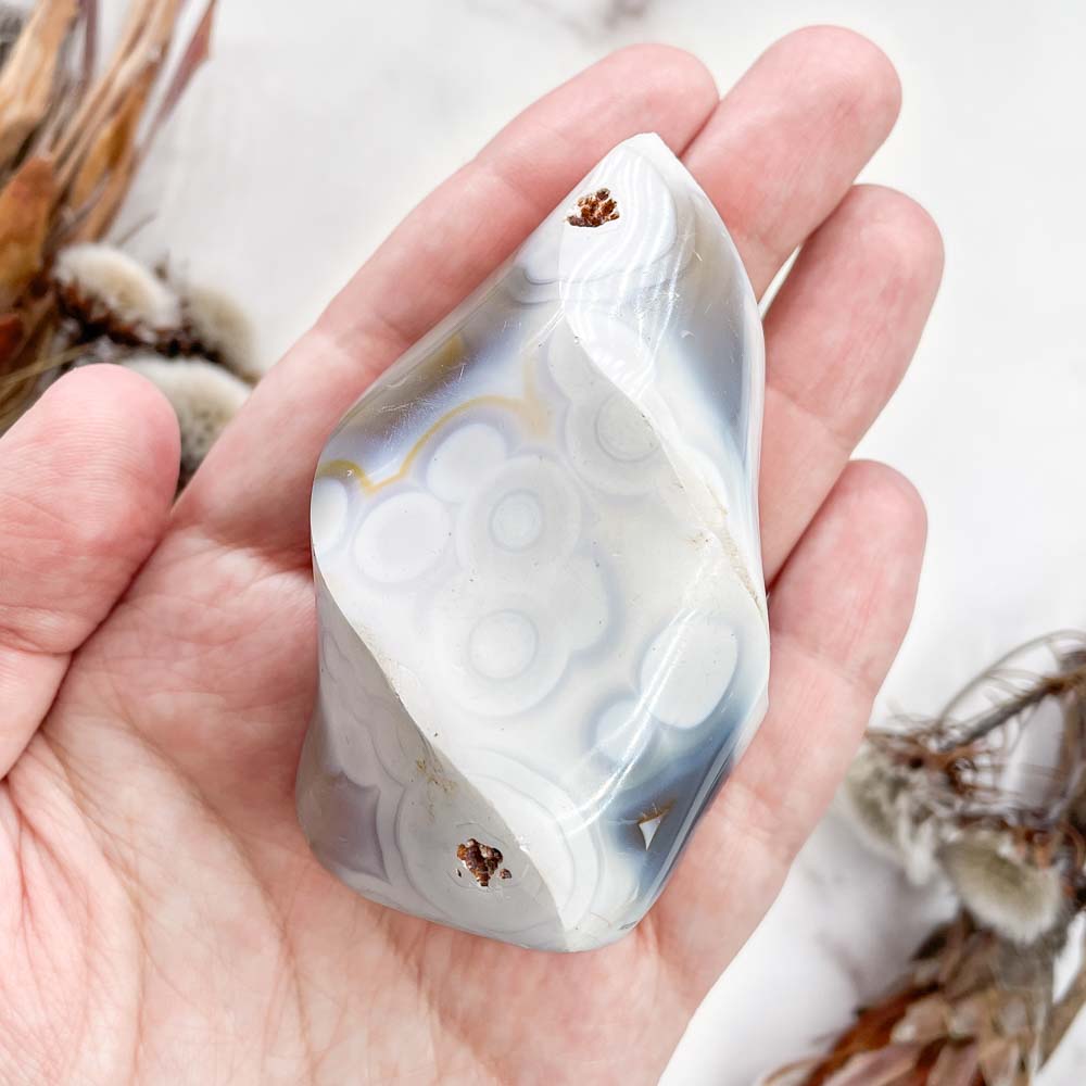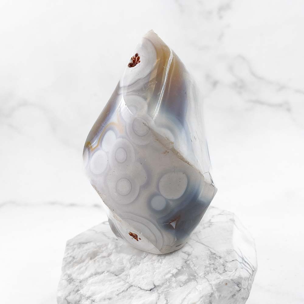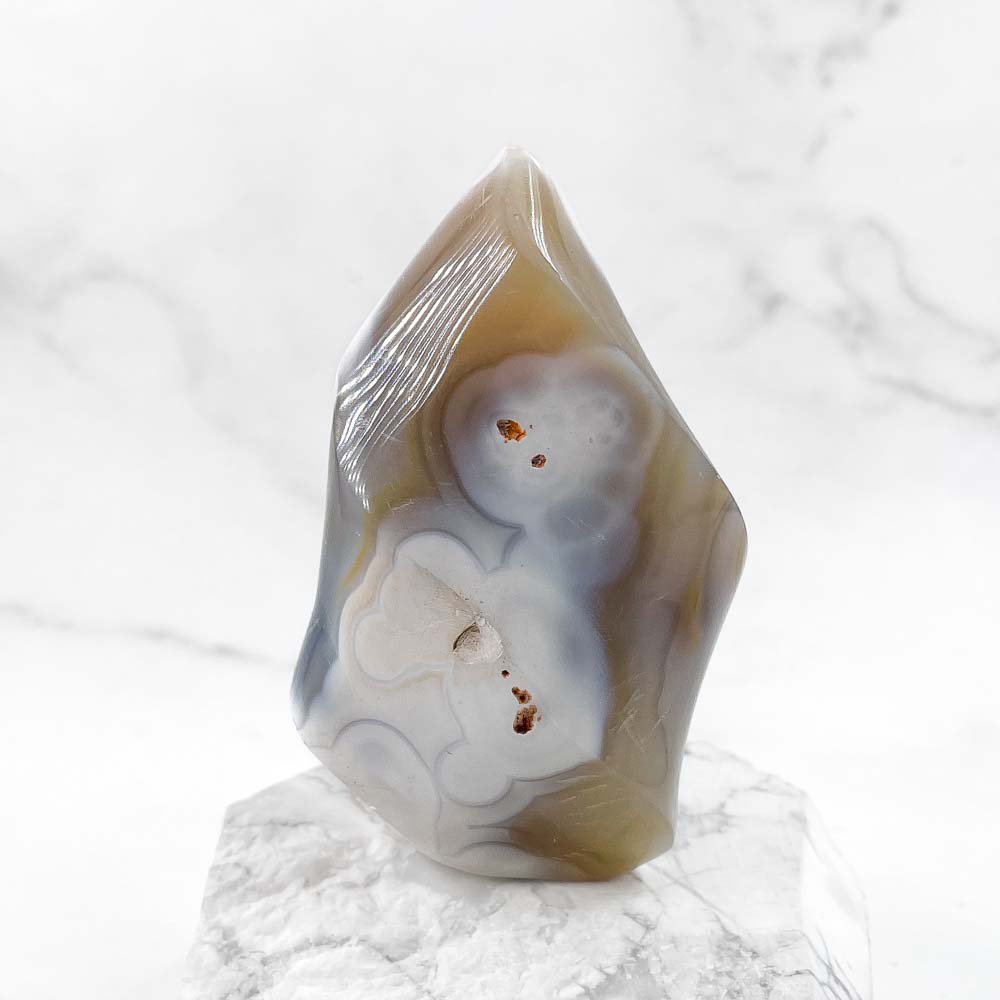 Агат - отличный камень для знакомства с миром камней и минералов. Его можно назвать камнем-собакой. Он будет верным другом, помощников в делах и не даст в обиду. Камень помогает сглаживать углы, находить компромисс в любых ситуациях. Агат даёт ощущение спокойствия, умиротворения. Достаточно просто несколько минут рассматривать его узоры чтобы расслабиться и насладиться красотой камня.