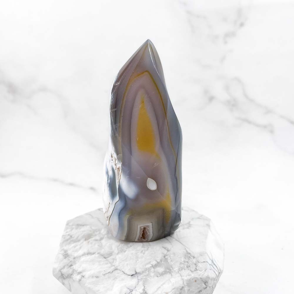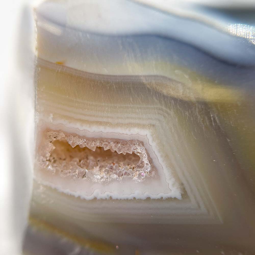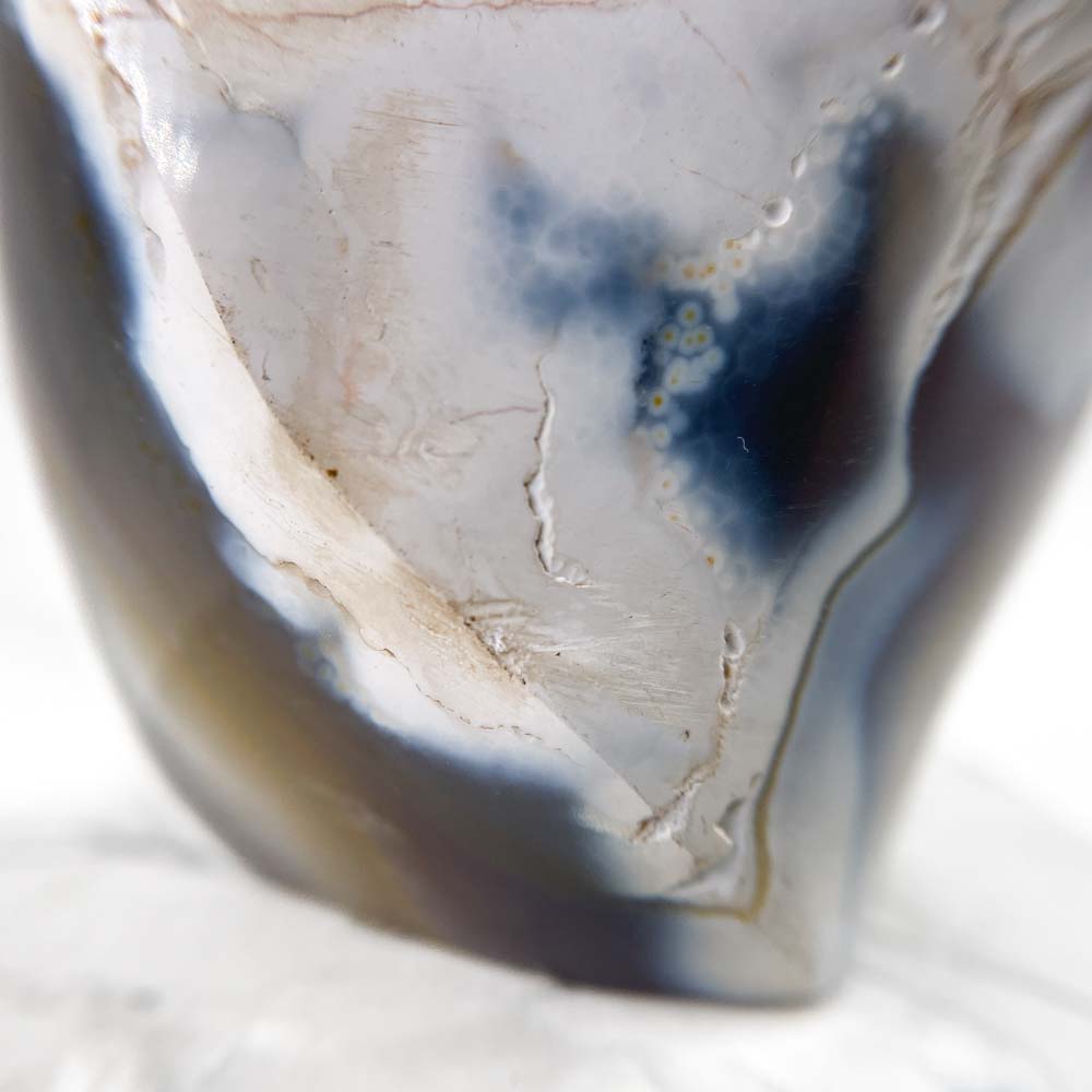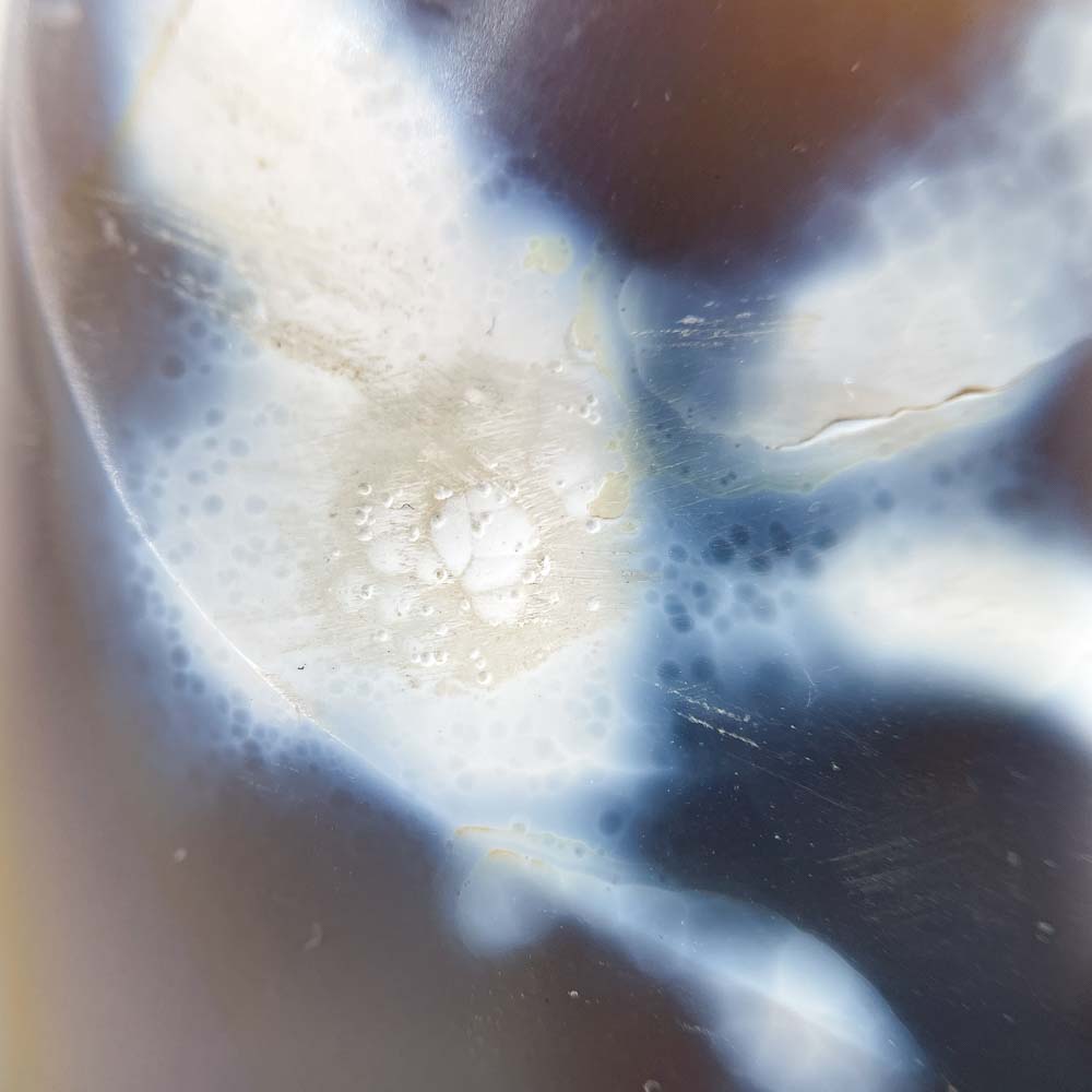 Агат - отличный камень для знакомства с миром камней и минералов. Его можно назвать камнем-собакой. Он будет верным другом, помощников в делах и не даст в обиду. Камень помогает сглаживать углы, находить компромисс в любых ситуациях. Агат даёт ощущение спокойствия, умиротворения. Достаточно просто несколько минут рассматривать его узоры чтобы расслабиться и насладиться красотой камня.