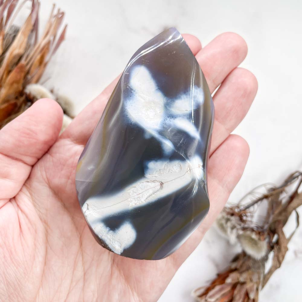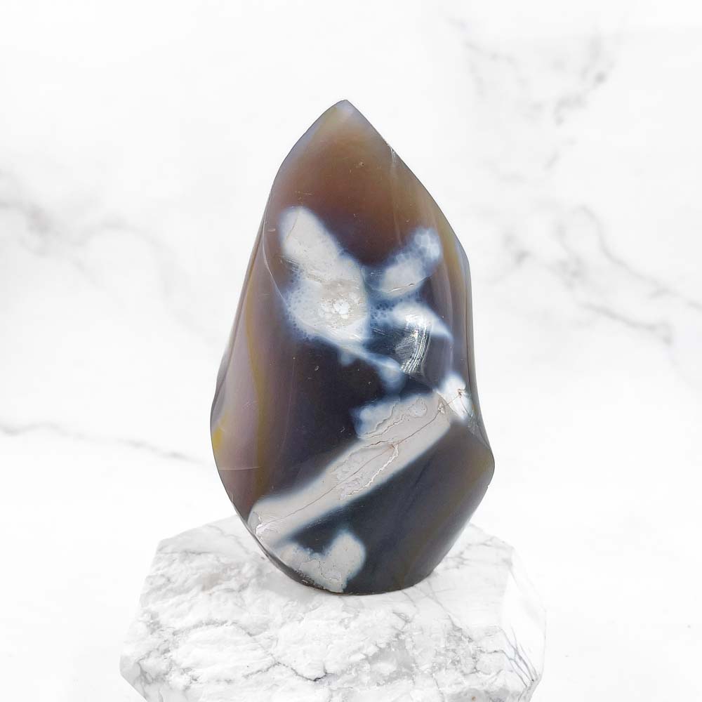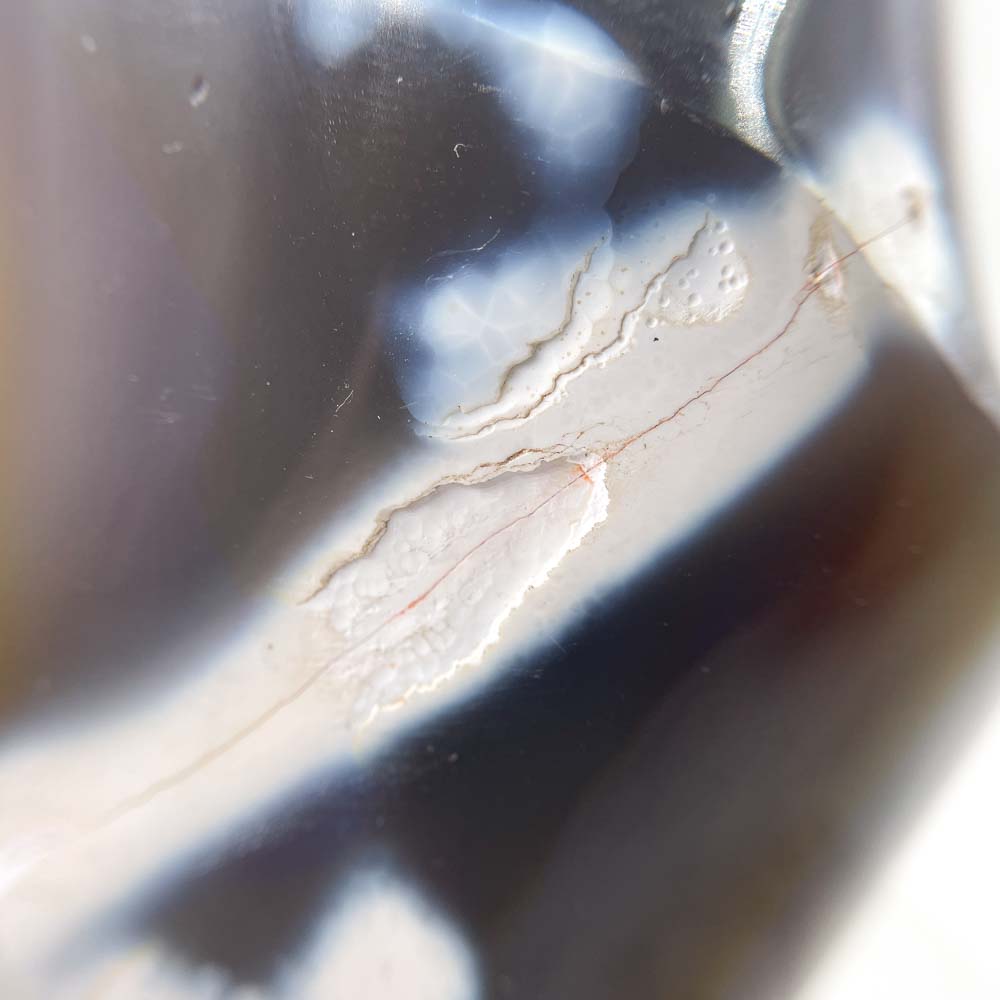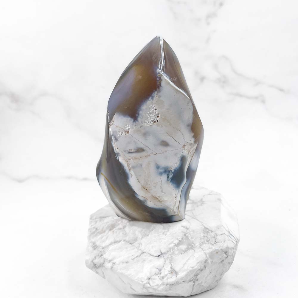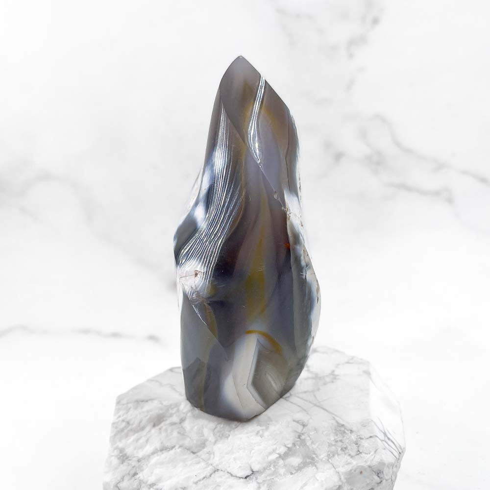 Агат - отличный камень для знакомства с миром камней и минералов. Его можно назвать камнем-собакой. Он будет верным другом, помощников в делах и не даст в обиду. Камень помогает сглаживать углы, находить компромисс в любых ситуациях. Агат даёт ощущение спокойствия, умиротворения. Достаточно просто несколько минут рассматривать его узоры чтобы расслабиться и насладиться красотой камня.