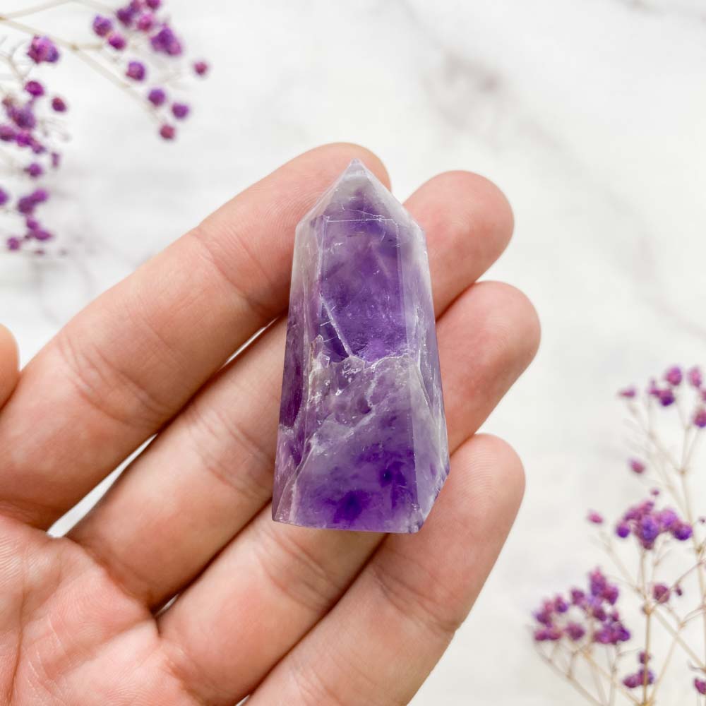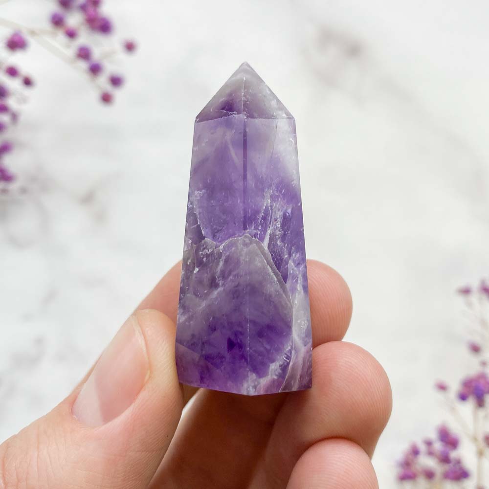 Аметист один из самых популярных камней в мире. Среди наших клиентов более 50% начинали свои коллекции именно с него. Нежный цвет разных оттенков фиолетового и сиреневого очень приятен для глаз, а ровные кристаллы поражают всех, кто впервые сталкивается с минералами. Этот камень помогает нам замедлиться, развить осознанность и понять предназначение в этом мире.
