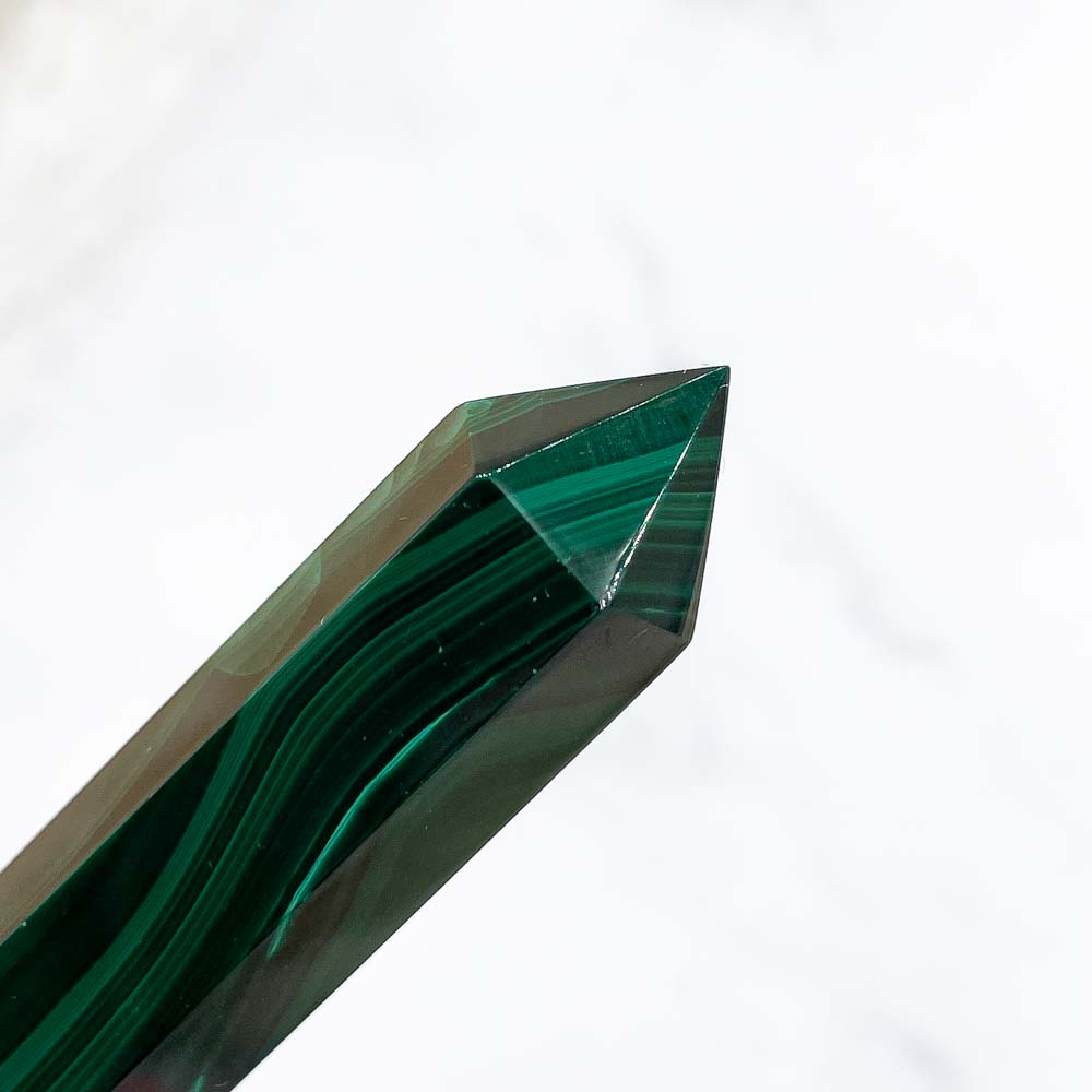 На психологическом уровне малахит - это камень изменений. Жизнь под влиянием этого камня становится более яркой, рискованной. Он заставляет развиваться и чётко указывает, что же блокирует духовный рост. Малахит обнажает глубоко запрятанные чувства, разрушает нежелательные связи и модели поведения. Учит как брать на себя ответственность за действия, мысли чувства.