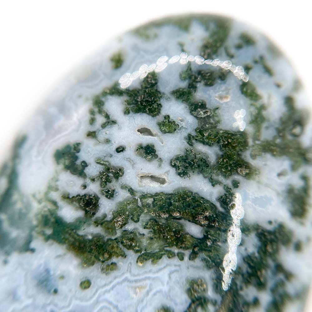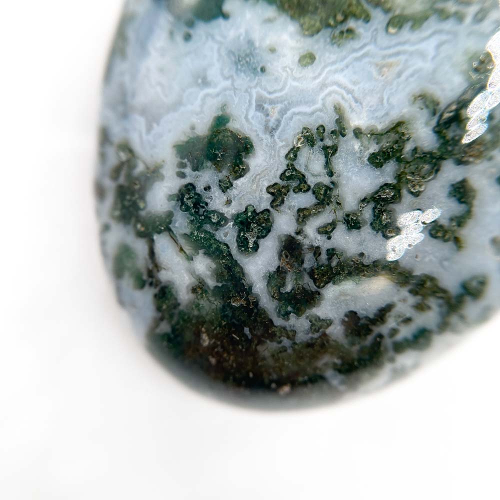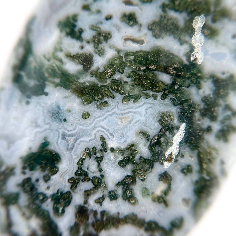 Агат - это разновидность халцедона с концентрическим рисунком. Иногда сам рисунок может быть практически незаметен, тогда камень можно также называть и халцедоном. Зелёные рисунки внутри созданы включениями хлорита. Они образуют в агате подобие застывшего мха или водорослей. Поэтому эта разновидность и называется моховой