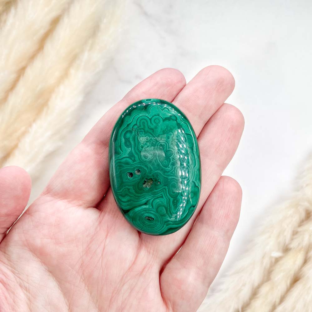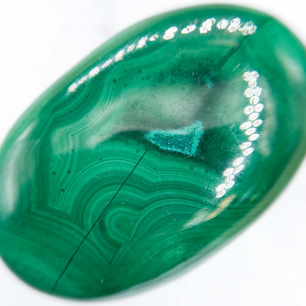 Малахит является мягким минералом и его не стоит хранить в одном месте с более трёрдыми камнями или кристаллами: кварцами, флюоритами, полевыми шпатами и др. Также его нежелательно мыть водой и противопоказано мыть мылом, в этом случае на камне может образоваться белый налёт.