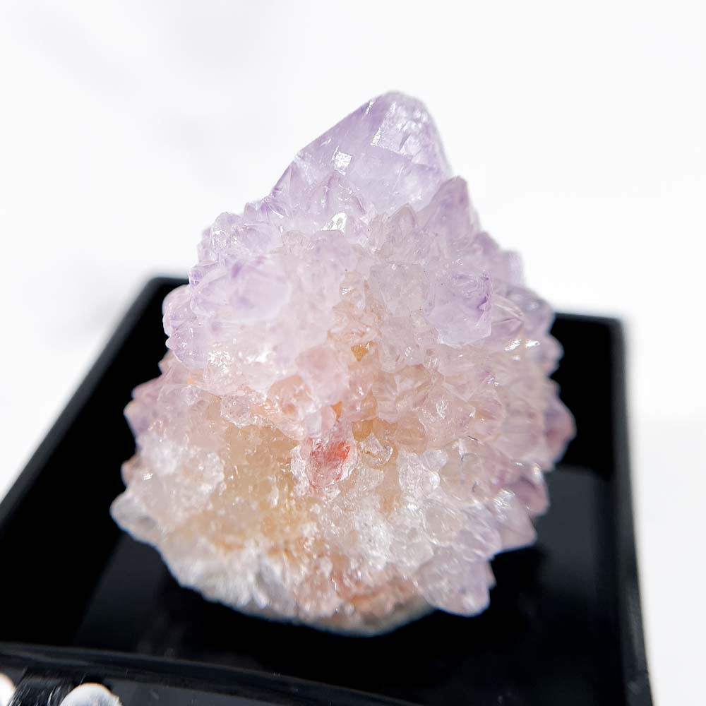 Аметист один из самых популярных камней в мире. Среди наших клиентов более 50% начинали свои коллекции именно с него. Нежный цвет разных оттенков фиолетового очень приятен для глаз, а ровные кристаллы поражают всех, кто впервые сталкивается с минералами. Этот камень помогает нам замедлиться, развить осознанность и понять предназначение в этом мире.