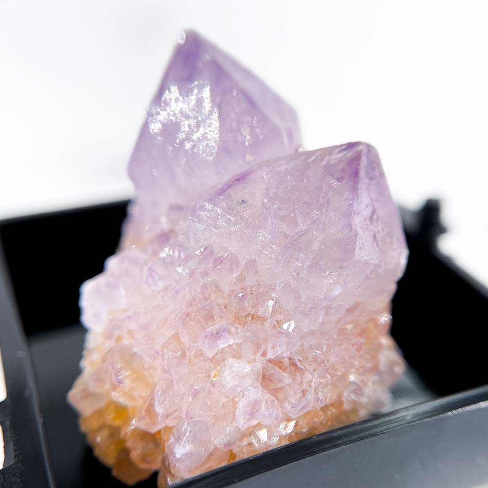 Аметист один из самых популярных камней в мире. Среди наших клиентов более 50% начинали свои коллекции именно с него. Нежный цвет разных оттенков фиолетового очень приятен для глаз, а ровные кристаллы поражают всех, кто впервые сталкивается с минералами. Этот камень помогает нам замедлиться, развить осознанность и понять предназначение в этом мире.
