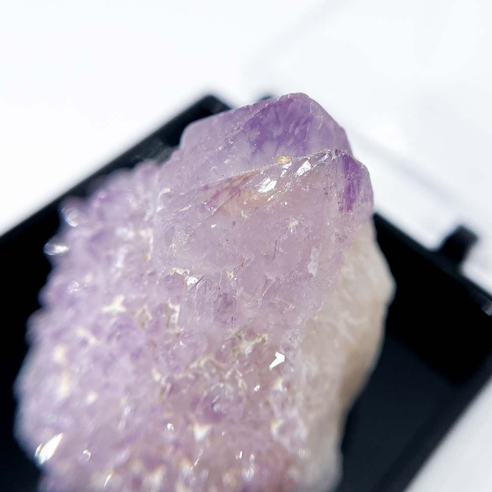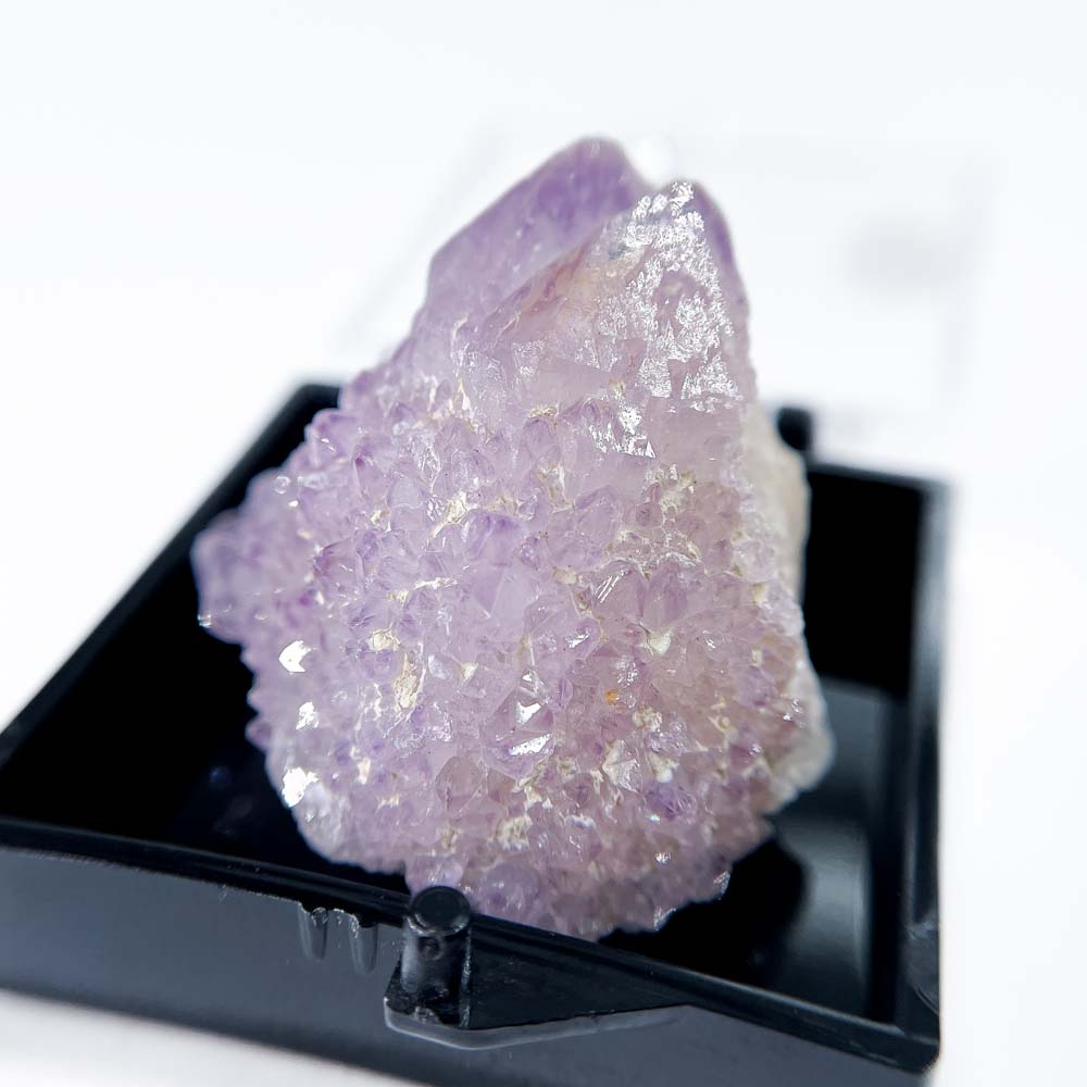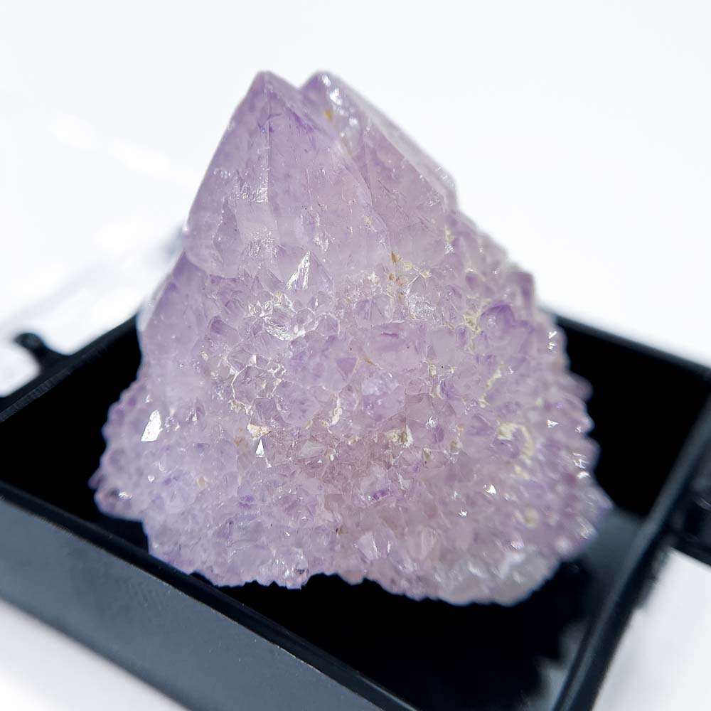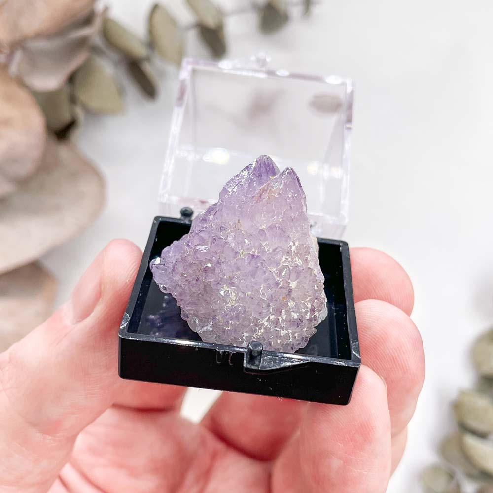 Аметист один из самых популярных камней в мире. Среди наших клиентов более 50% начинали свои коллекции именно с него. Нежный цвет разных оттенков фиолетового очень приятен для глаз, а ровные кристаллы поражают всех, кто впервые сталкивается с минералами. Этот камень помогает нам замедлиться, развить осознанность и понять предназначение в этом мире.