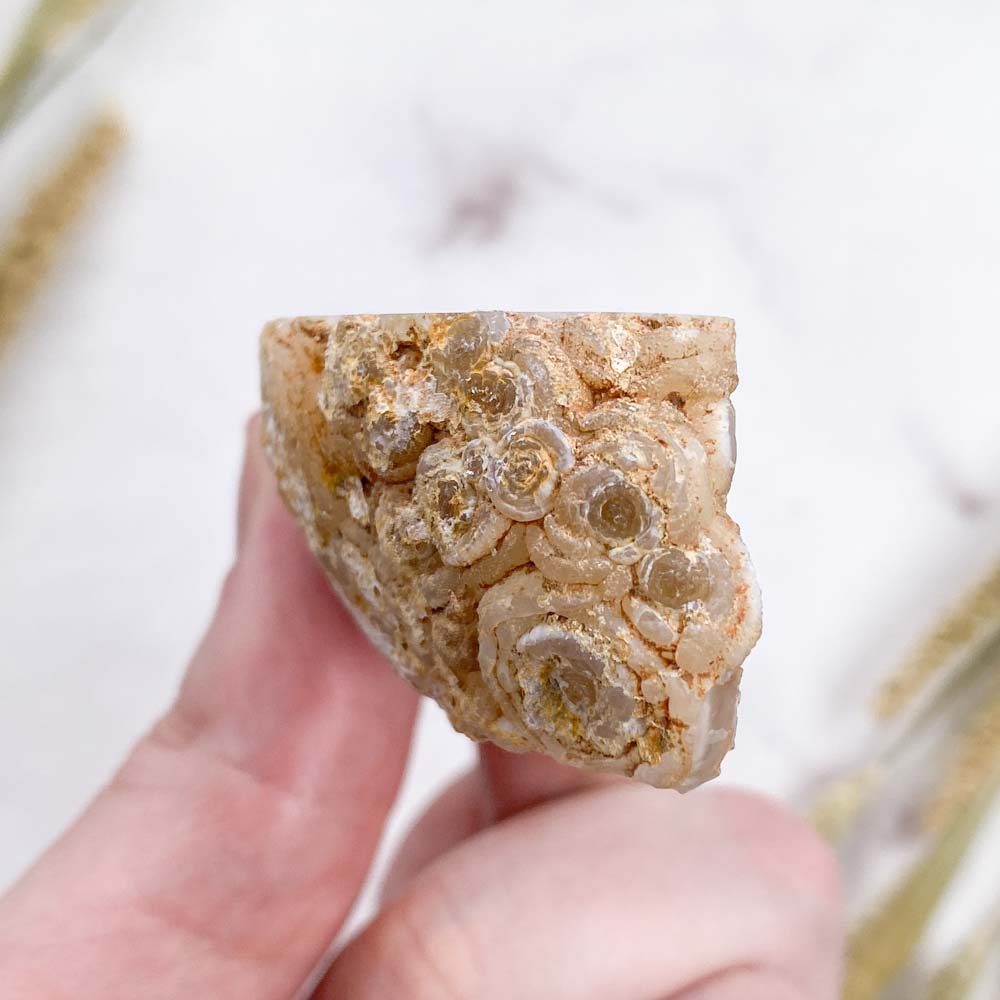 Агат - отличный камень для знакомства с миром камней и минералов. Его можно назвать камнем-собакой. Он будет верным другом, помощников в делах и не даст в обиду. Камень помогает сглаживать углы, находить компромисс в любых ситуациях. Агат даёт ощущение спокойствия, умиротворения. Достаточно просто несколько минут рассматривать его узоры чтобы расслабиться и насладиться красотой камня.