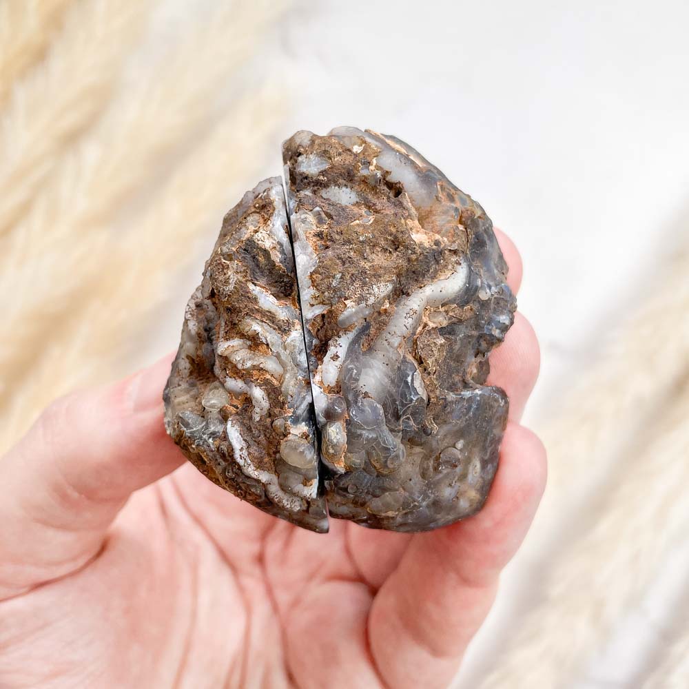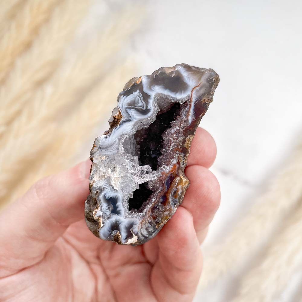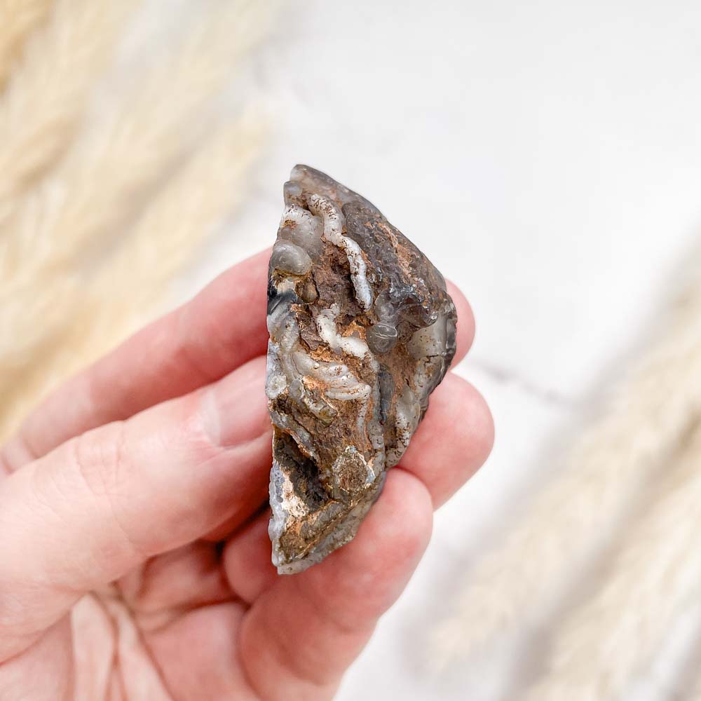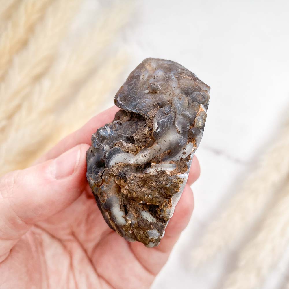 Агат - отличный камень для знакомства с миром камней и минералов. Его можно назвать камнем-собакой. Он будет верным другом, помощников в делах и не даст в обиду. Камень помогает сглаживать углы, находить компромисс в любых ситуациях. Агат даёт ощущение спокойствия, умиротворения. Достаточно просто несколько минут рассматривать его узоры чтобы расслабиться и насладиться красотой камня.