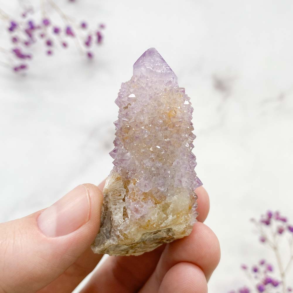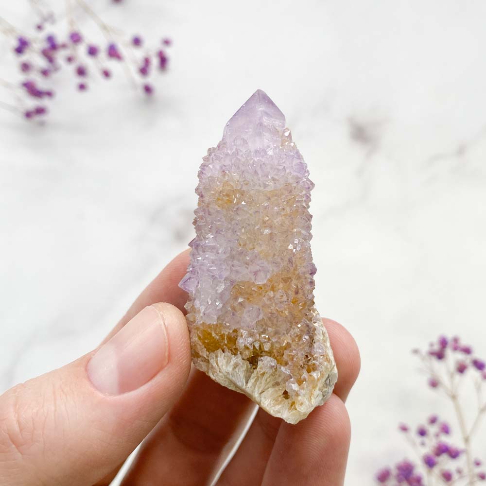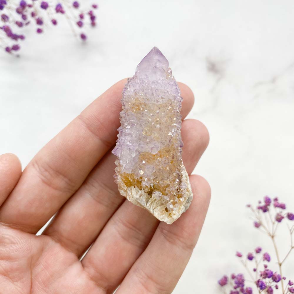 Аметист один из самых популярных камней в мире. Среди наших клиентов более 50% начинали свои коллекции именно с него. Нежный цвет разных оттенков фиолетового очень приятен для глаз, а ровные кристаллы поражают всех, кто впервые сталкивается с минералами. Этот камень помогает нам замедлиться, развить осознанность и понять предназначение в этом мире.