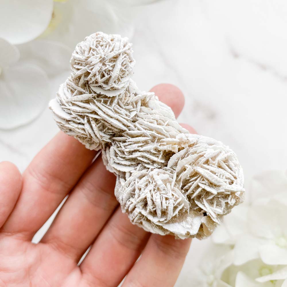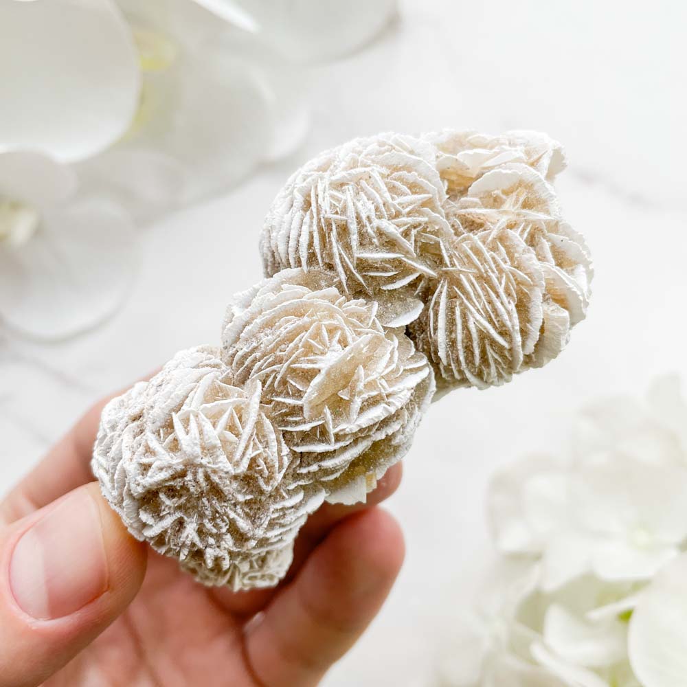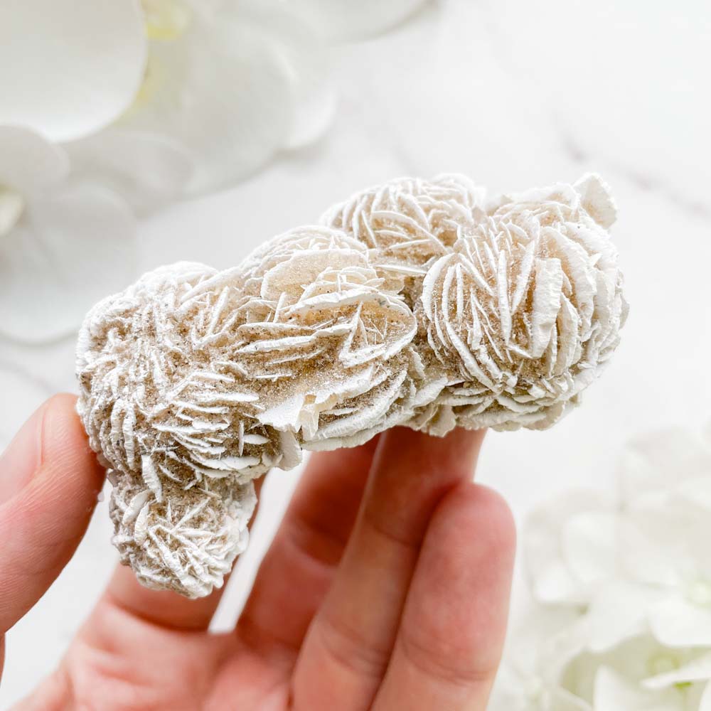 “Гипсовые розы” образуются в полупустынях и пустынях, где есть сухой воздух, резкие перепады температур, засоленные и загипсованные почвы. Утром, с повышением температуры гипс начинает растворяться и, поднимаясь в растворе капиллярными силами, отлагается на поверхности при испарении воды. Это происходит потому, что у гипса есть интересное свойство, при температуре выше 24 градусов по Цельсию он плохо растворяется, пока не начинает выпадать в осадок. К вечеру, с понижением температуры, кристаллизация прекращается, но из-за недостатка влаги кристаллы не растворяются. Подобный процесс повторяется многократно и образуются "гипсовые розы". Иногда при росте они захватывают песчинки вокруг себя и тогда их называют "пустынные или песчаные розы".