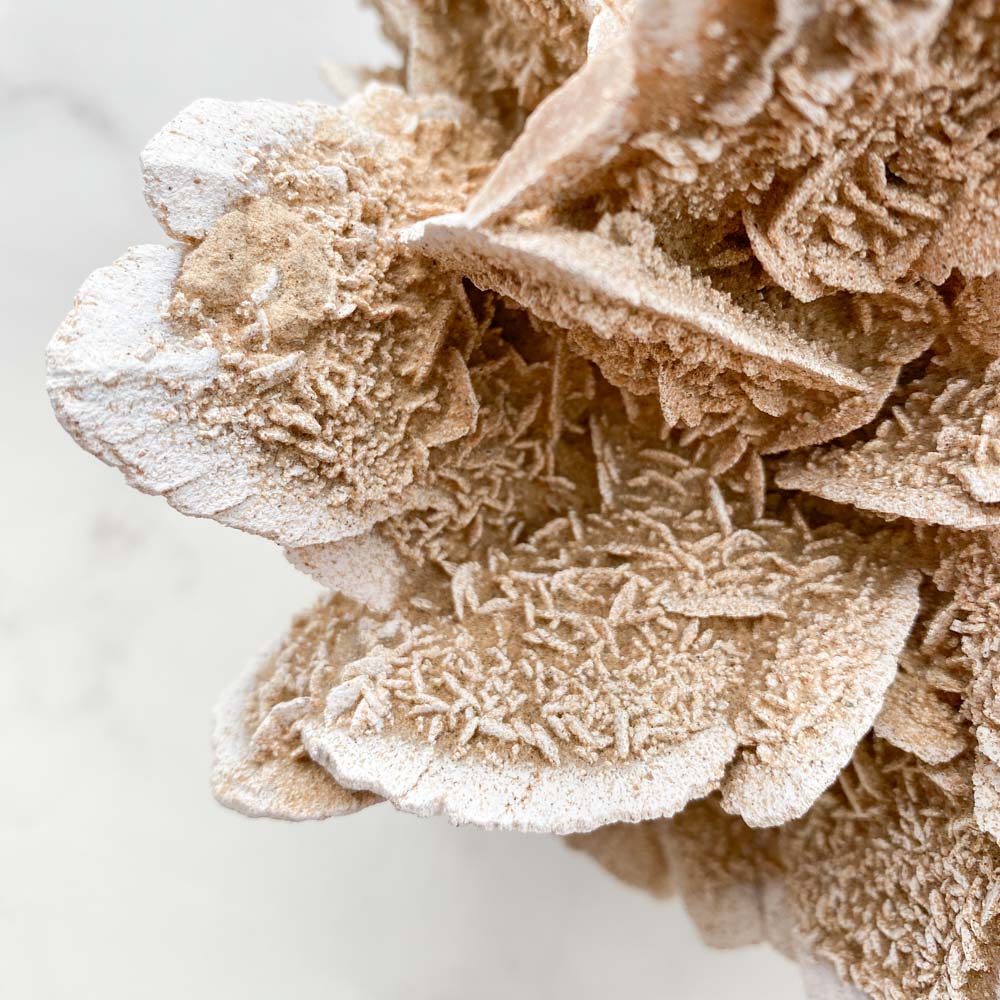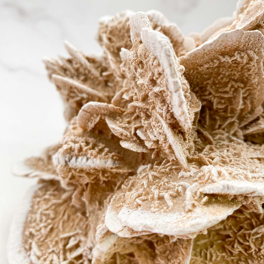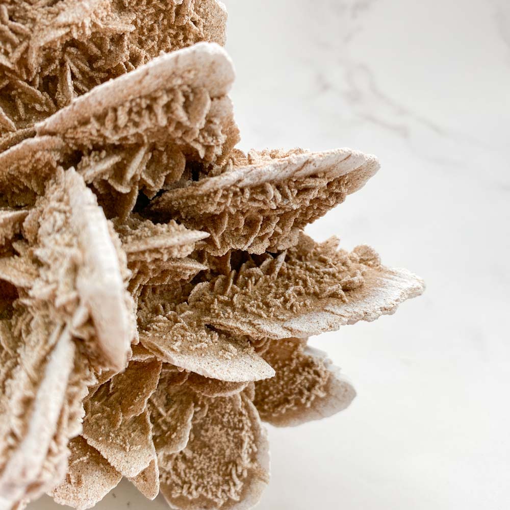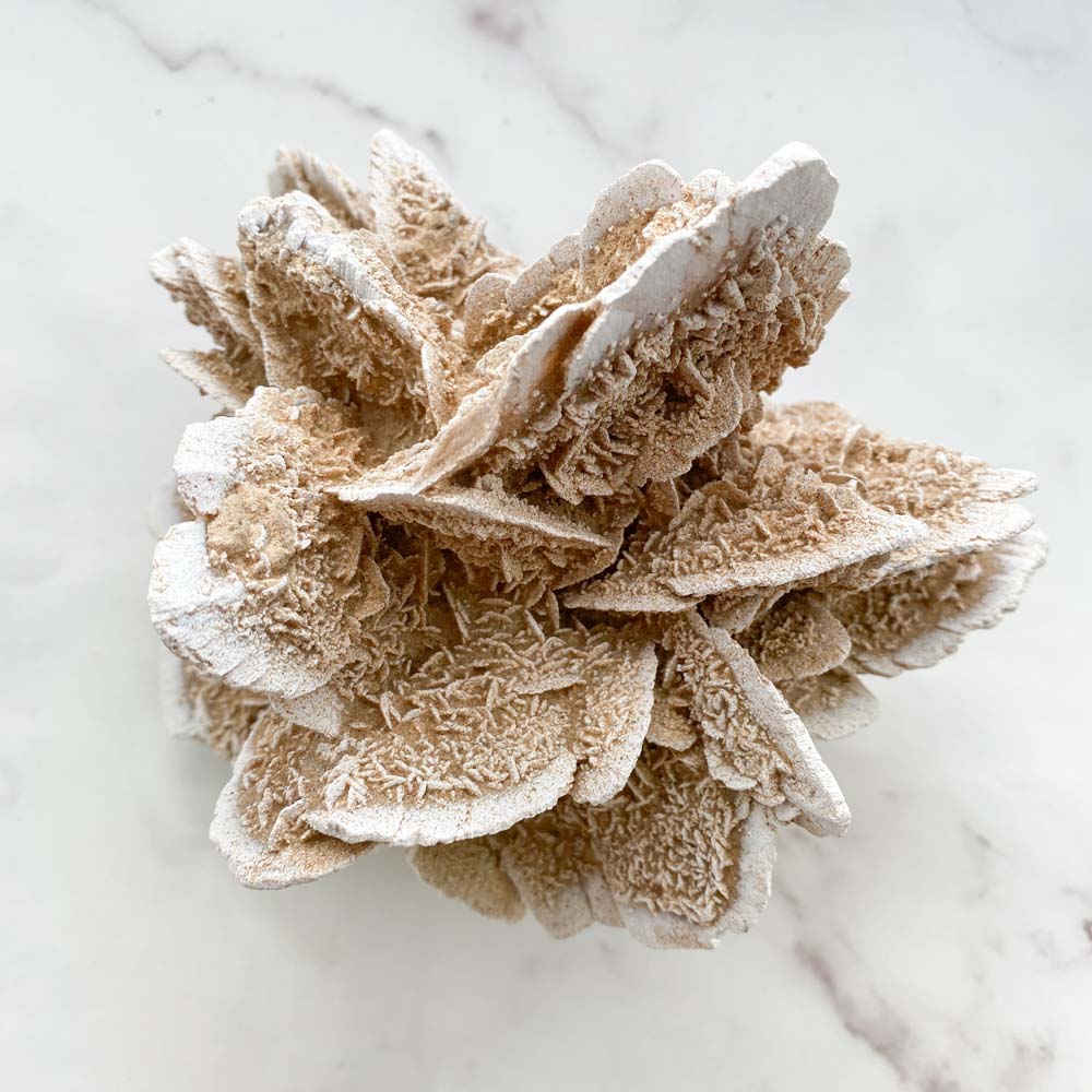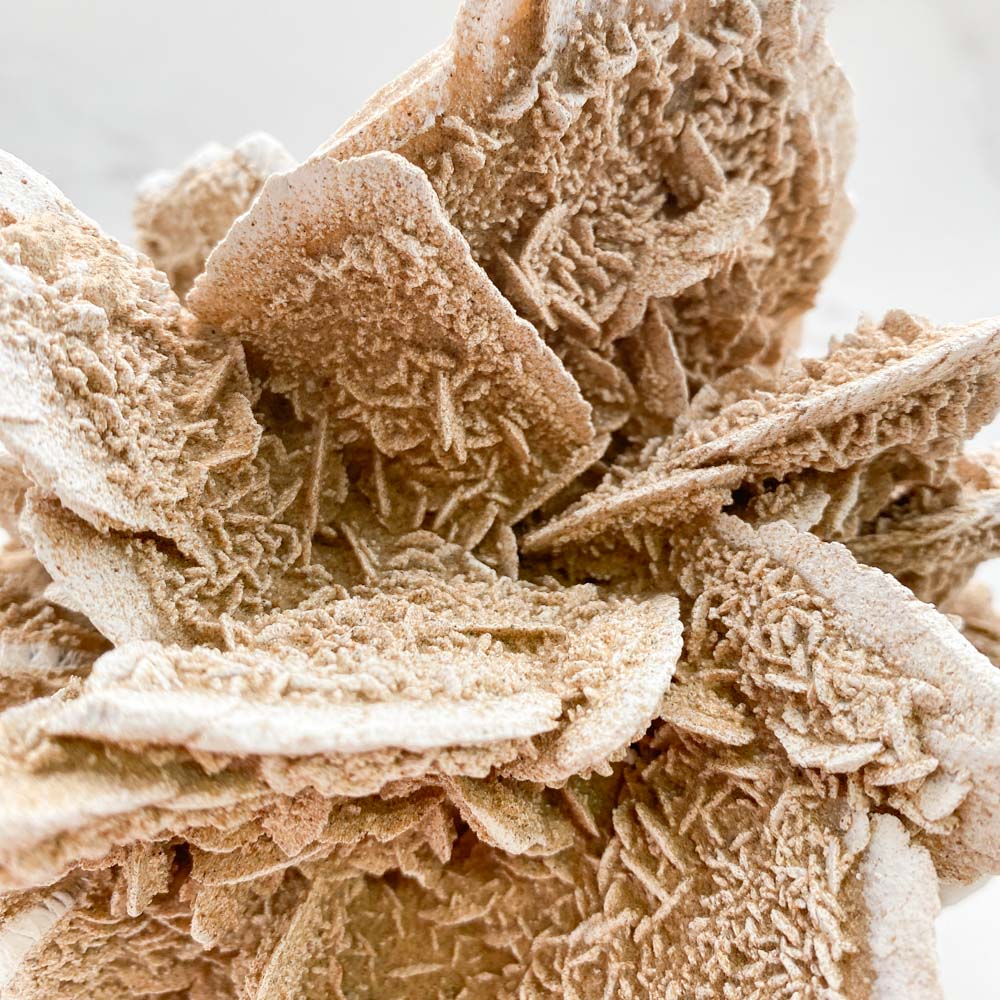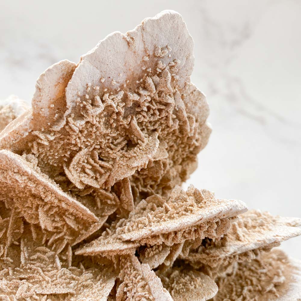 Данный тип сростка кристаллов гипса называется "гипсовой” или “пустынной розой". Это полностью природный агрегат, который на самом деле часто напоминает цветок. Чаще всего подобные образцы находят в регионах с засушливым климатом.
