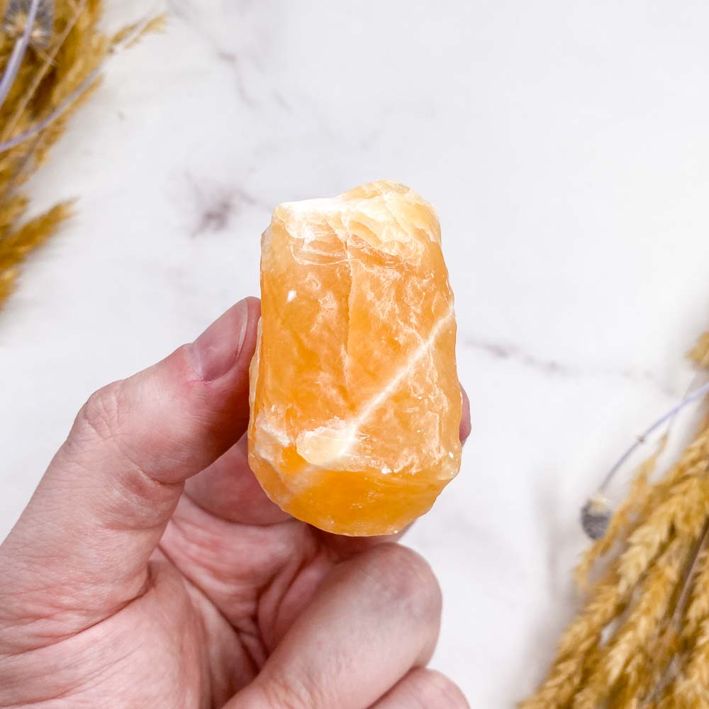 Считается, что оранжевый или «золотистый» кальцит укрепляет волю, помогает быстро погрузиться в любой процесс, будь то медитация или новый рабочий проект. И есть у него наиболее интересное и желанное свойство, которое одна знакомый литотерапевт сформулировала как: "Камень очень надо!" Т.е. нужно визуализировать вещь, мечту, которую хотите получить, ждать, а потом Вселенная поможет это получить максимально быстро и легко.