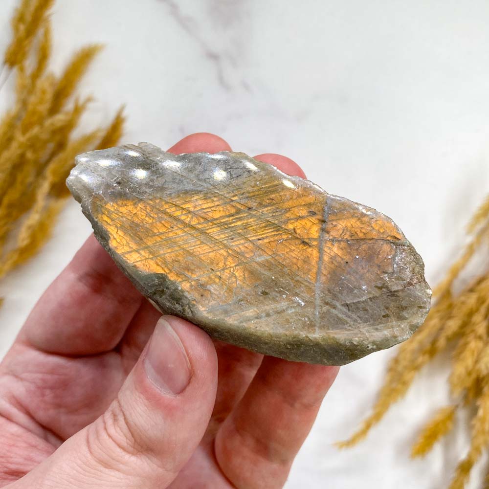 Лабрадорит - это горная порода, состоящая из лабрадора (обычно не менее 60%). Но иногда тяжело рассчитать процентный состав в породе, поэтому в данном описании мы будем применять только термин лабрадор, т.к. именно он чаще всего применяется в изделяих и образцах.