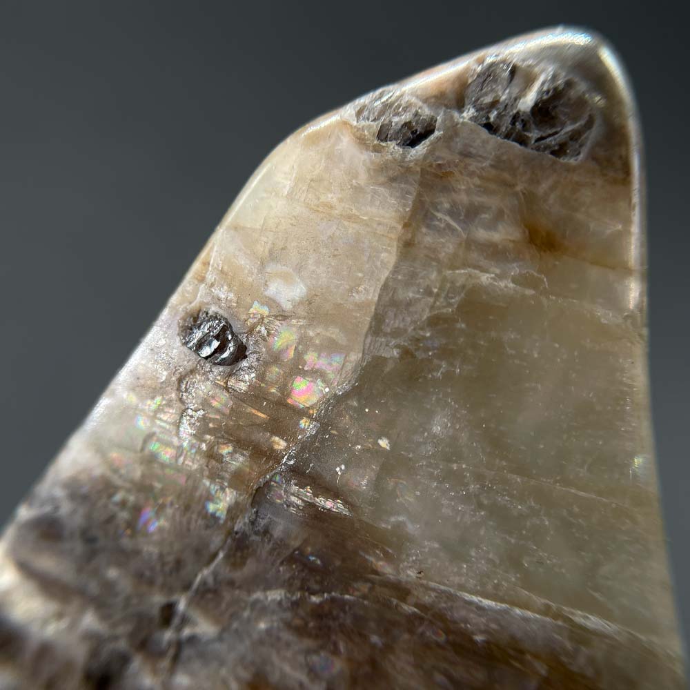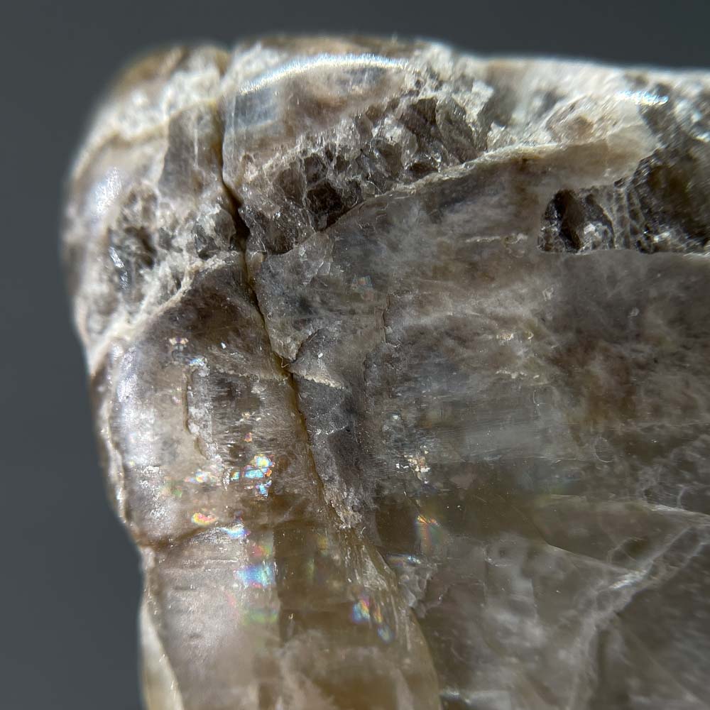 Лунный камень - это торговый термин обозначающий минералы группы полевых шпатов с выраженной игрой света - иризацией. Она может быть как цветной как и серебристой как на данных образцах.