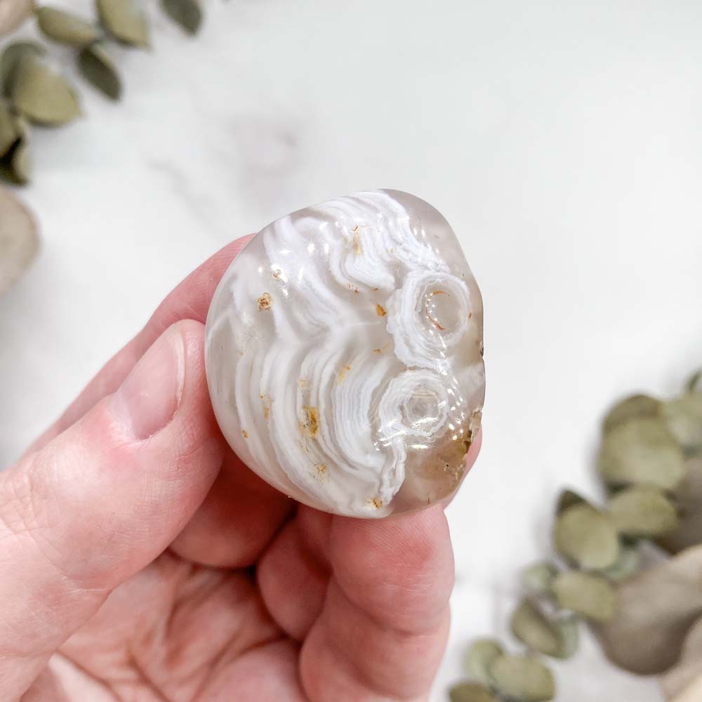 Агат - отличный камень для знакомства с миром камней и минералов. Его можно назвать камнем-собакой. Он будет верным другом, помощников в делах и не даст в обиду. Камень помогает сглаживать углы, находить компромисс в любых ситуациях. Агат даёт ощущение спокойствия, умиротворения. Достаточно просто несколько минут рассматривать его узоры чтобы расслабиться и насладиться красотой камня
