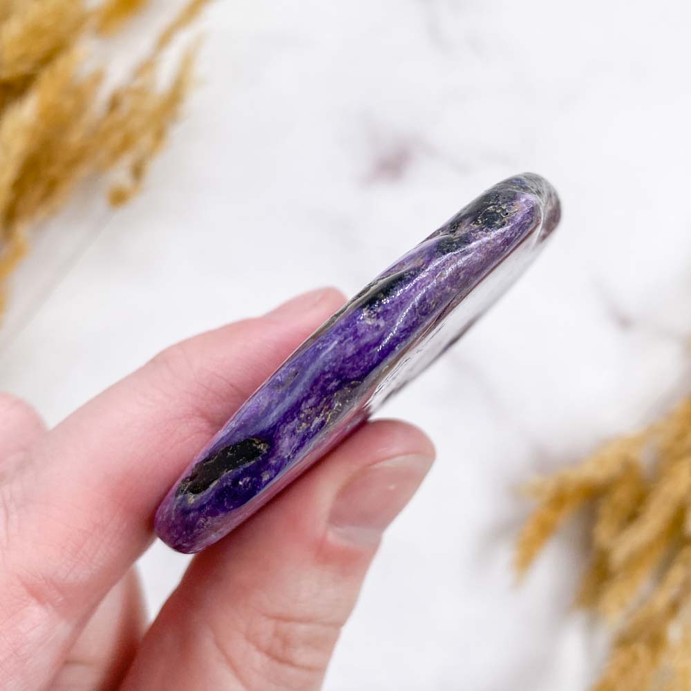 Чароит позволяет избавиться от давно тревожащих страхов, помогает в формировании внутреннего стрежня путем проведения серии глубоких медитативных практик. Придание спокойствия, размеренности жизни, равнодушия к внешним проблемам в целях гармонизации собственного общества. Людям руководящих должностей станет верным товарищем в быстром принятии решений и внутренней устойчивости, а также целеустремленности. Придает уверенности в решении проблем глобального характера, т.е. касающихся значительного количества людей.