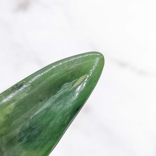 Стоит отметить, что нефрит является не минералом, а именно горной породой, где основную массу составляет актинолит (придает зеленый цвет) и треломит (беловатые разновидности), частыми примесями также являются включения темного магнетита. Образование нефрита почти всегда связано с областями внедрения магмы в серпентиниты, реже формирование образцов связывается с воздействием расплавленных пород высокой температуры на доломиты.