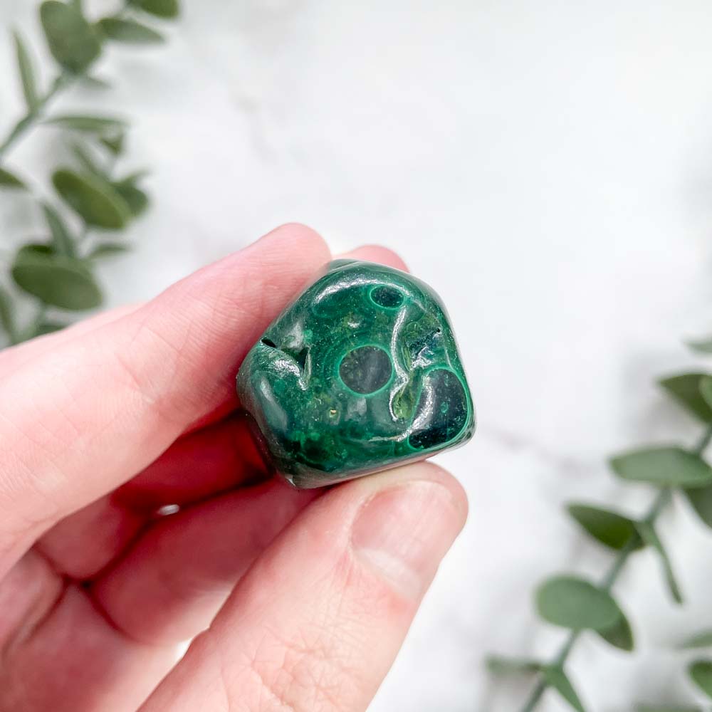 Малахит является мягким минералом и его не стоит хранить в одном месте с более трёрдыми камнями или кристаллами: кварцами, флюоритами, полевыми шпатами и др. Также его нежелательно мыть водой и противопоказано мыть мылом, в этом случае на камне может образоваться белый налёт.