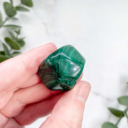 Малахит является мягким минералом и его не стоит хранить в одном месте с более трёрдыми камнями или кристаллами: кварцами, флюоритами, полевыми шпатами и др. Также его нежелательно мыть водой и противопоказано мыть мылом, в этом случае на камне может образоваться белый налёт.