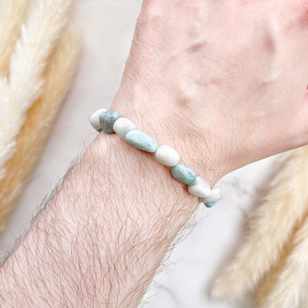Ларимар помогает найти свое место в жизни, любимое дело. Ларимар помогает от чувства беспокойства, стресса. Способствует тому, чтобы было легче выражать свои мысли и идеи, он умиротворяет и помогает понять, кто вы есть на самом деле, приводит к взаимопониманию. Ларимар помогает от зависимостей материального мира, от чувства вины и агрессии.
