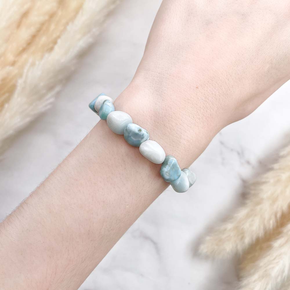 Ларимар помогает найти свое место в жизни, любимое дело.  Ларимар помогает от чувства беспокойства, стресса. Способствует тому, чтобы было легче выражать свои мысли и идеи, он умиротворяет и помогает понять, кто вы есть на самом деле, приводит к взаимопониманию. Ларимар помогает от зависимостей материального мира, от чувства вины и агрессии.