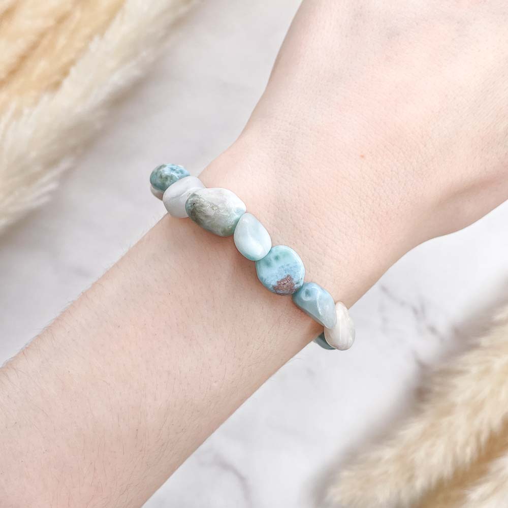 Ларимар помогает найти свое место в жизни, любимое дело.  Ларимар помогает от чувства беспокойства, стресса. Способствует тому, чтобы было легче выражать свои мысли и идеи, он умиротворяет и помогает понять, кто вы есть на самом деле, приводит к взаимопониманию. Ларимар помогает от зависимостей материального мира, от чувства вины и агрессии.