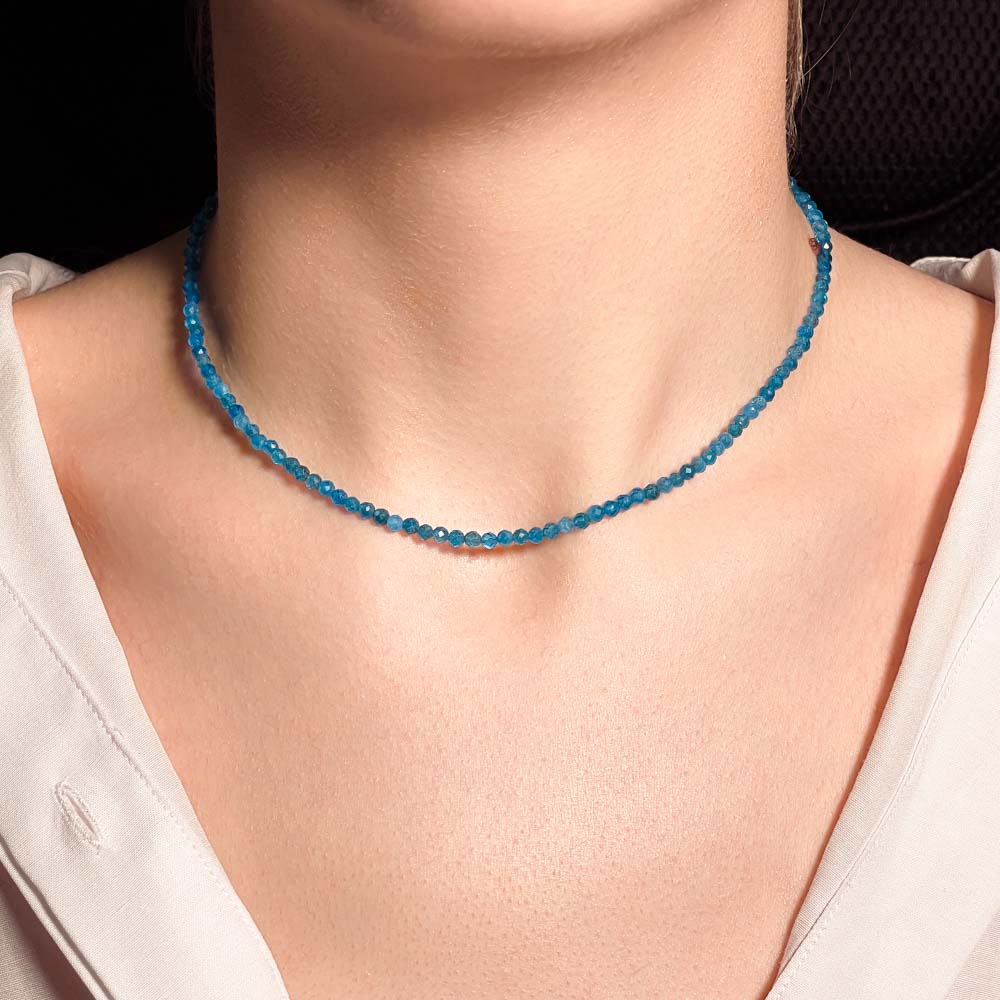 Чокер из апатита синего (огранка)