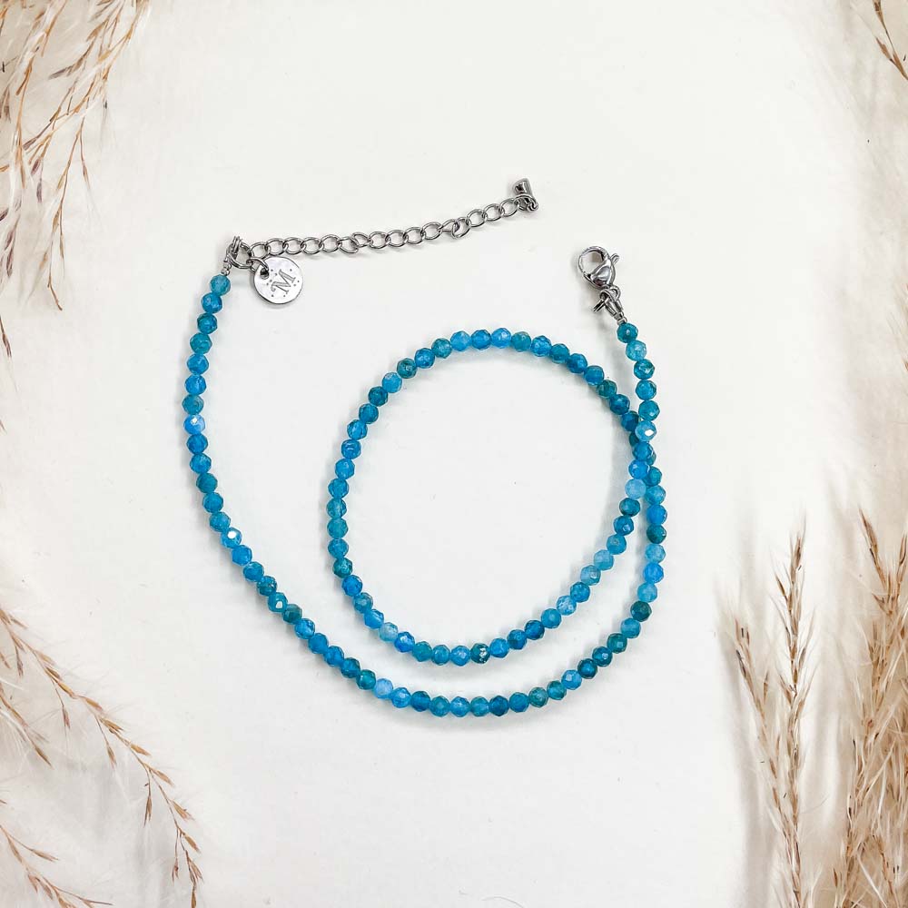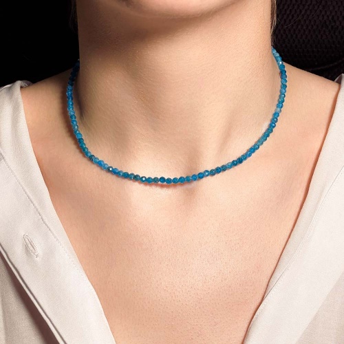 Чокер из апатита синего (огранка)