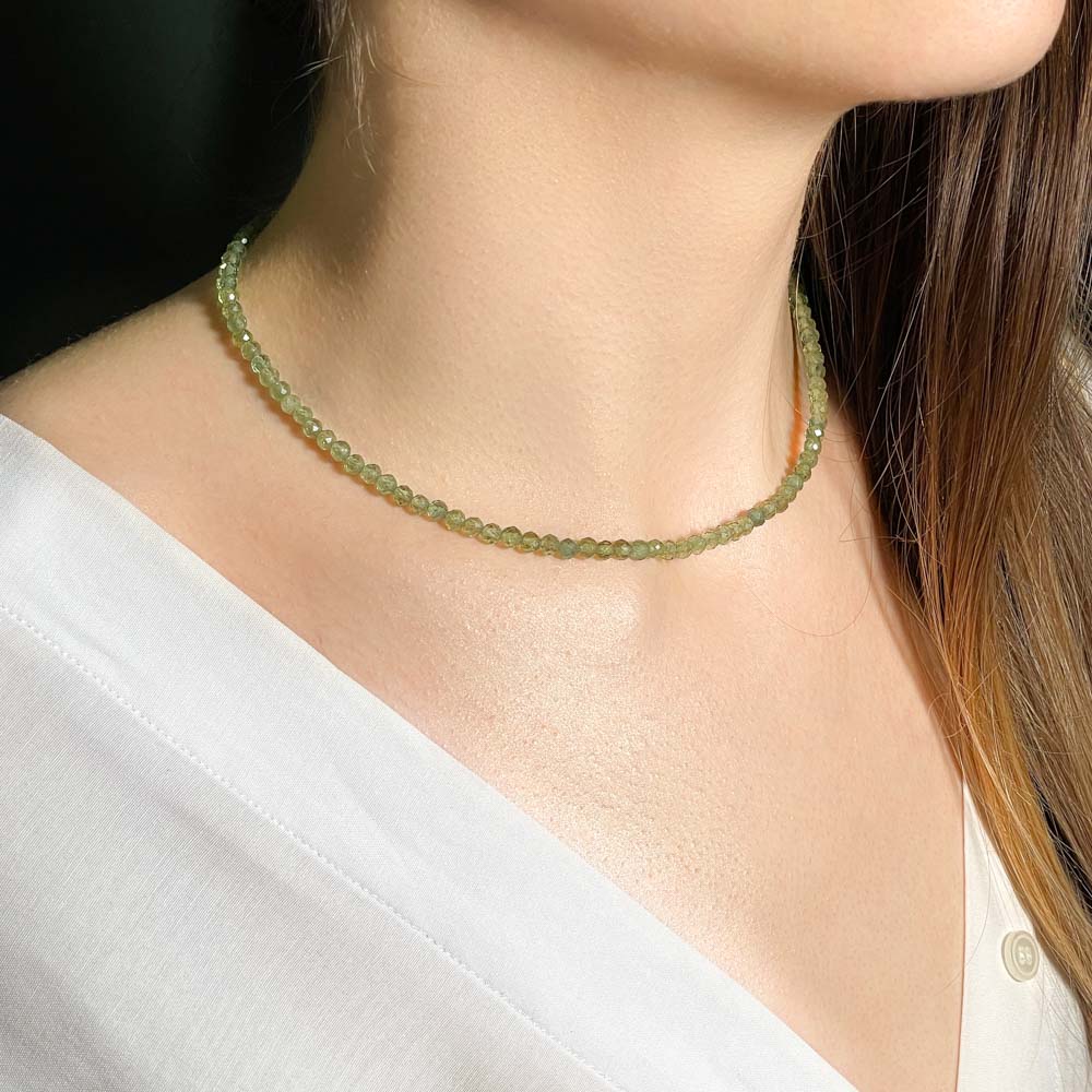 Чокер из апатита зеленого (огранка)