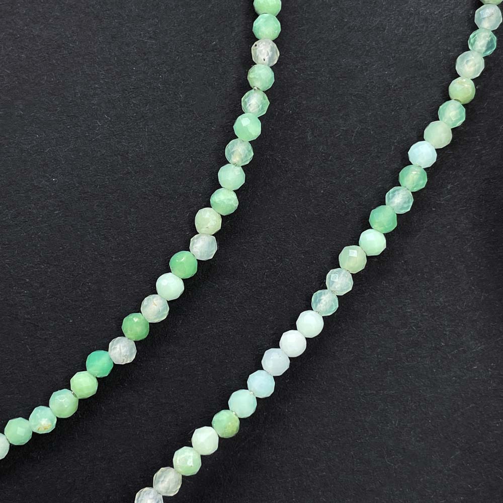 Хризопраз часто встречается вместе со своим родственником хризопалом. Отличаются друг от друга они по блеску и излому. Если расколоть хризопраз, то скол будет неровный и матовый, а у хризопала будет более восковый блеск и излом похожий на стеклянный.