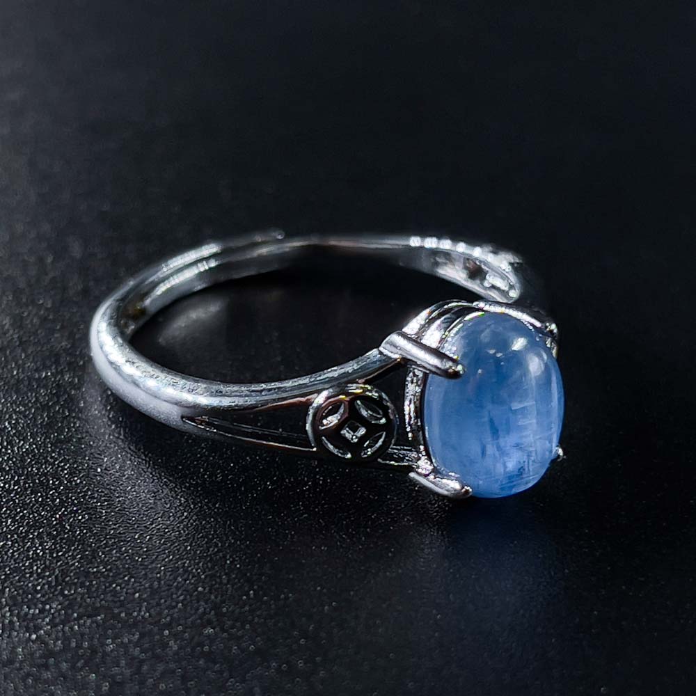 Отношение к горловой чакре проявляется в способности минерала к пробуждению ораторских способностей, четкого и свободного изложения собственных мыслей и прочищения связок. Помогает отстраниться от негативных и мешающих мыслей и суждений, с целью формирования собственного неповторимого жизненного пути, т.е. кианит способствует реализации отложенных дел, приносит хозяину решимость и ответственность в осуществлении собственных планов. Также может использоваться для «заземления», дабы трезво оценить и проанализировать свои действия и поступки.