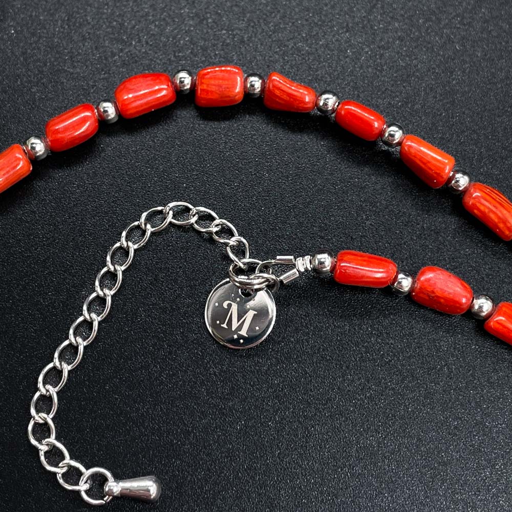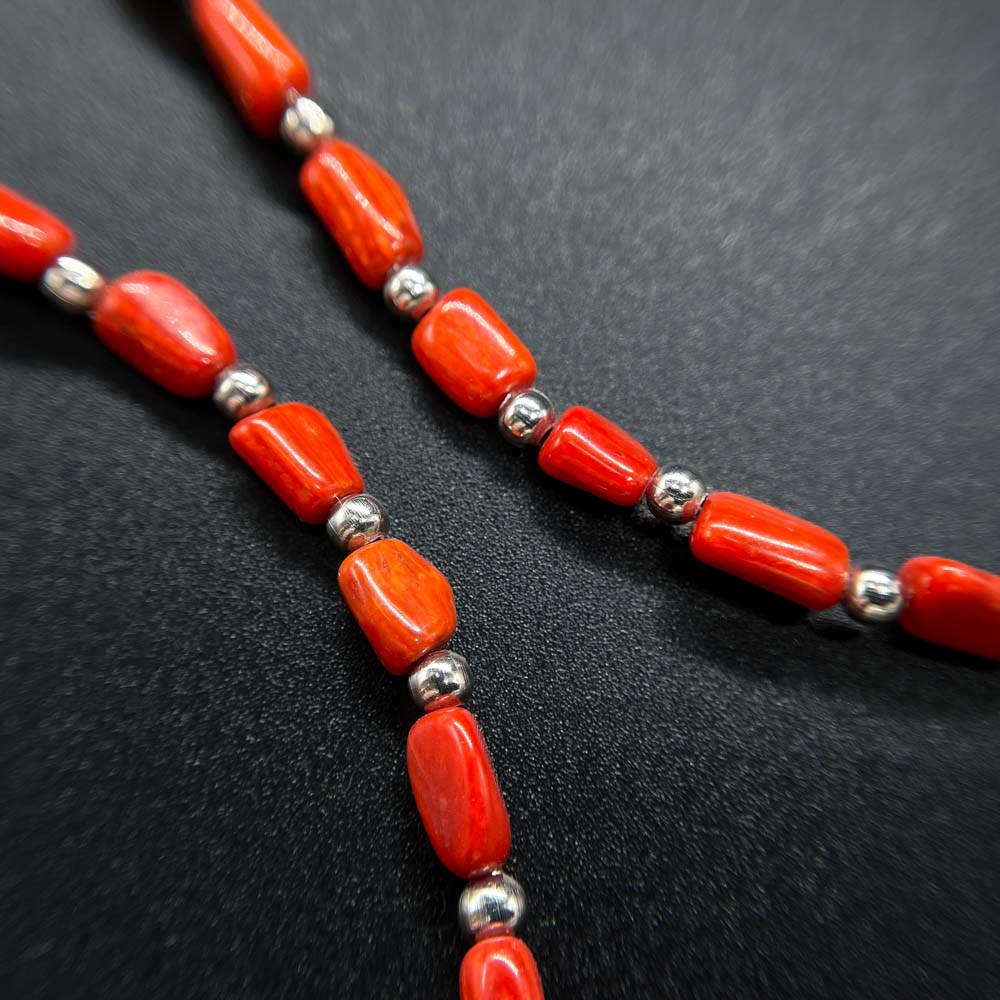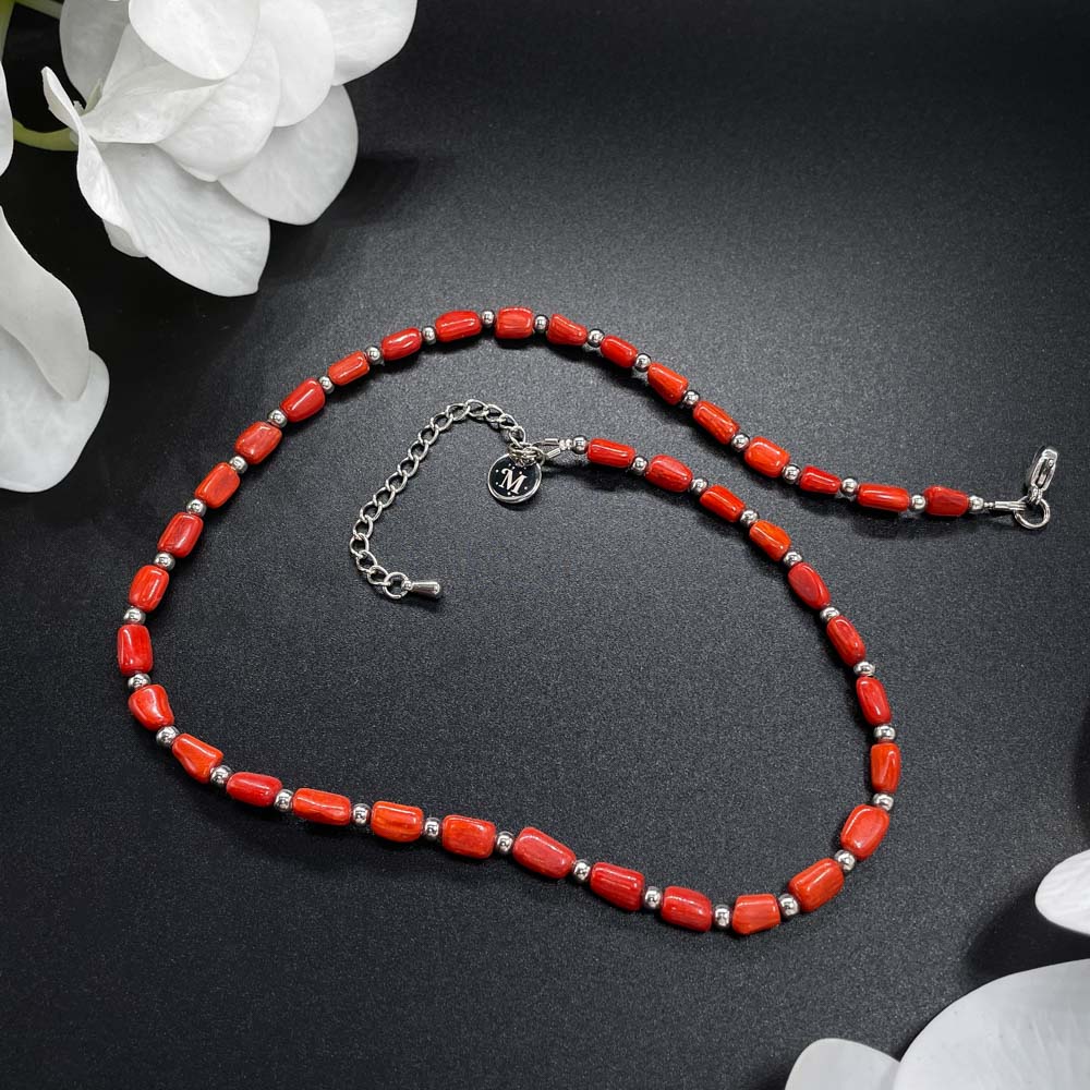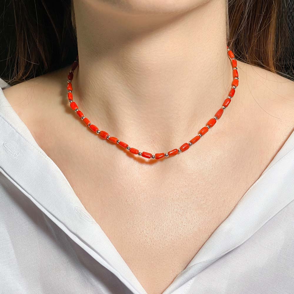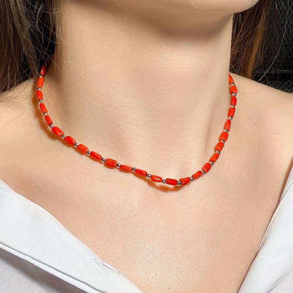 Колье из коралла тонированного с геметином