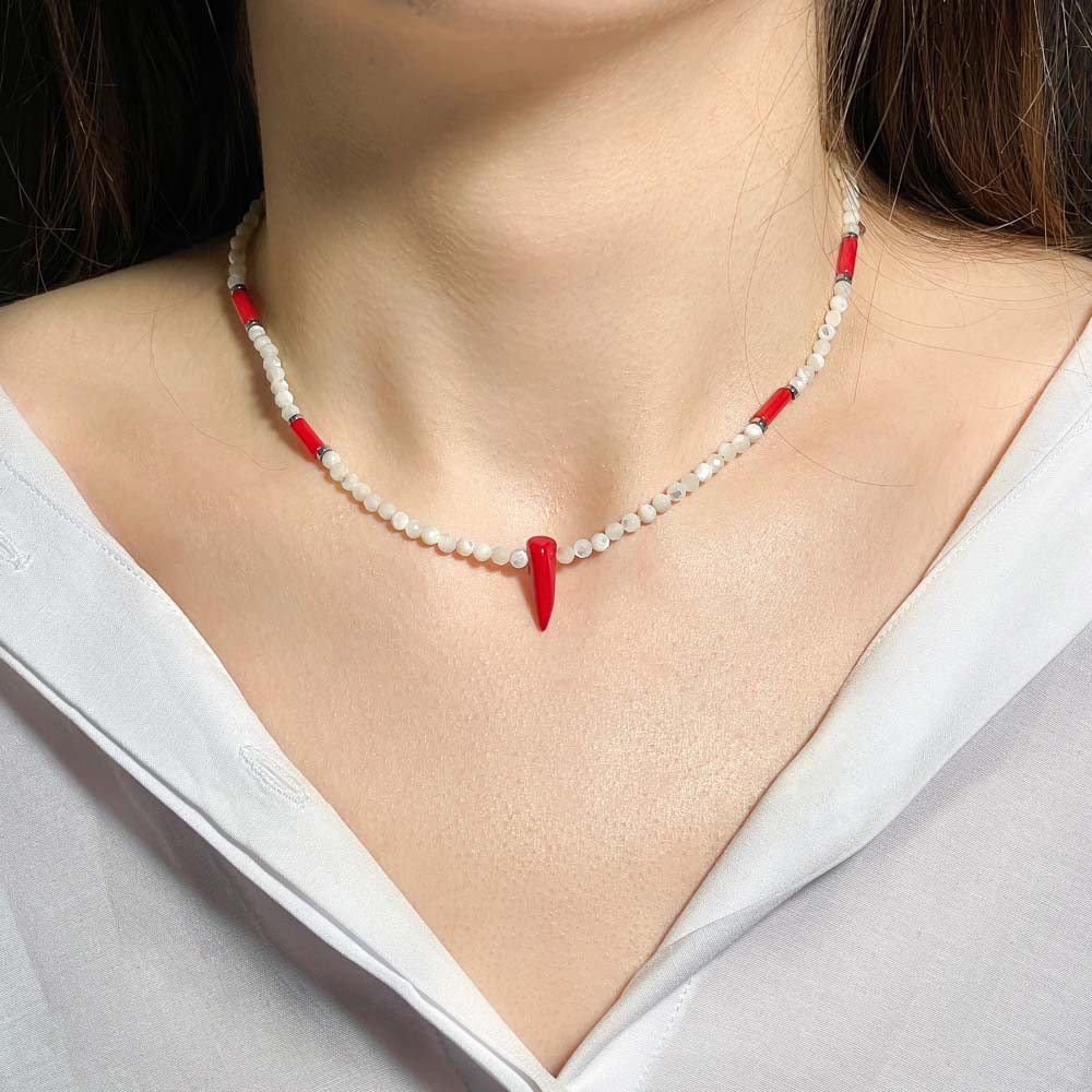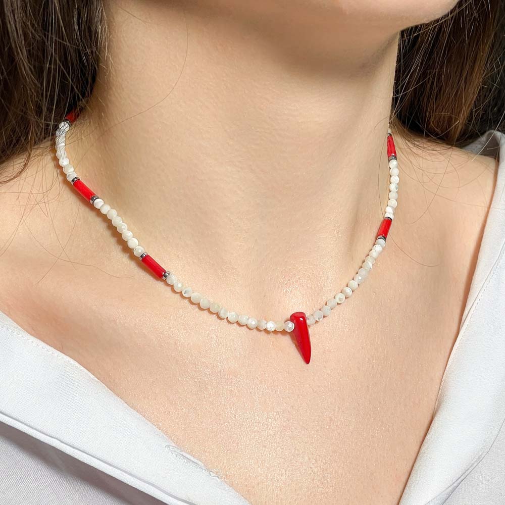 Колье из перламутра и коралла тонированного