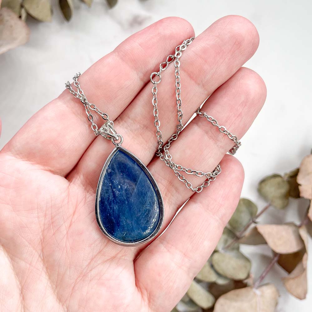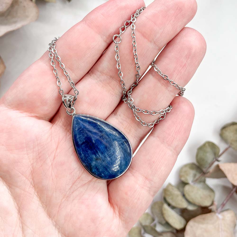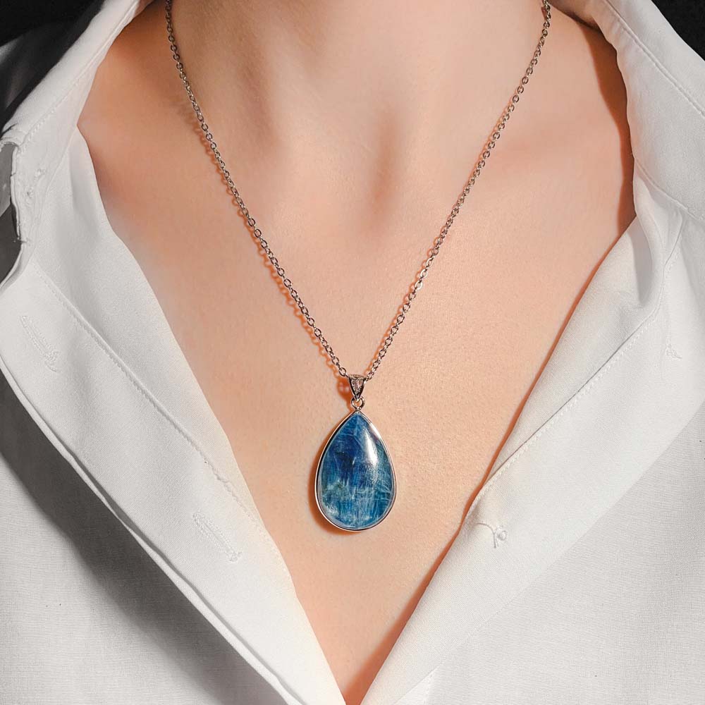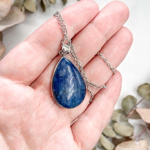 Отношение к горловой чакре проявляется в способности минерала к пробуждению ораторских способностей, четкого и свободного изложения собственных мыслей и прочищения связок. Помогает отстраниться от негативных и мешающих мыслей и суждений, с целью формирования собственного неповторимого жизненного пути, т.е. кианит способствует реализации отложенных дел, приносит хозяину решимость и ответственность в осуществлении собственных планов. Также может использоваться для «заземления», дабы трезво оценить и проанализировать свои действия и поступки.